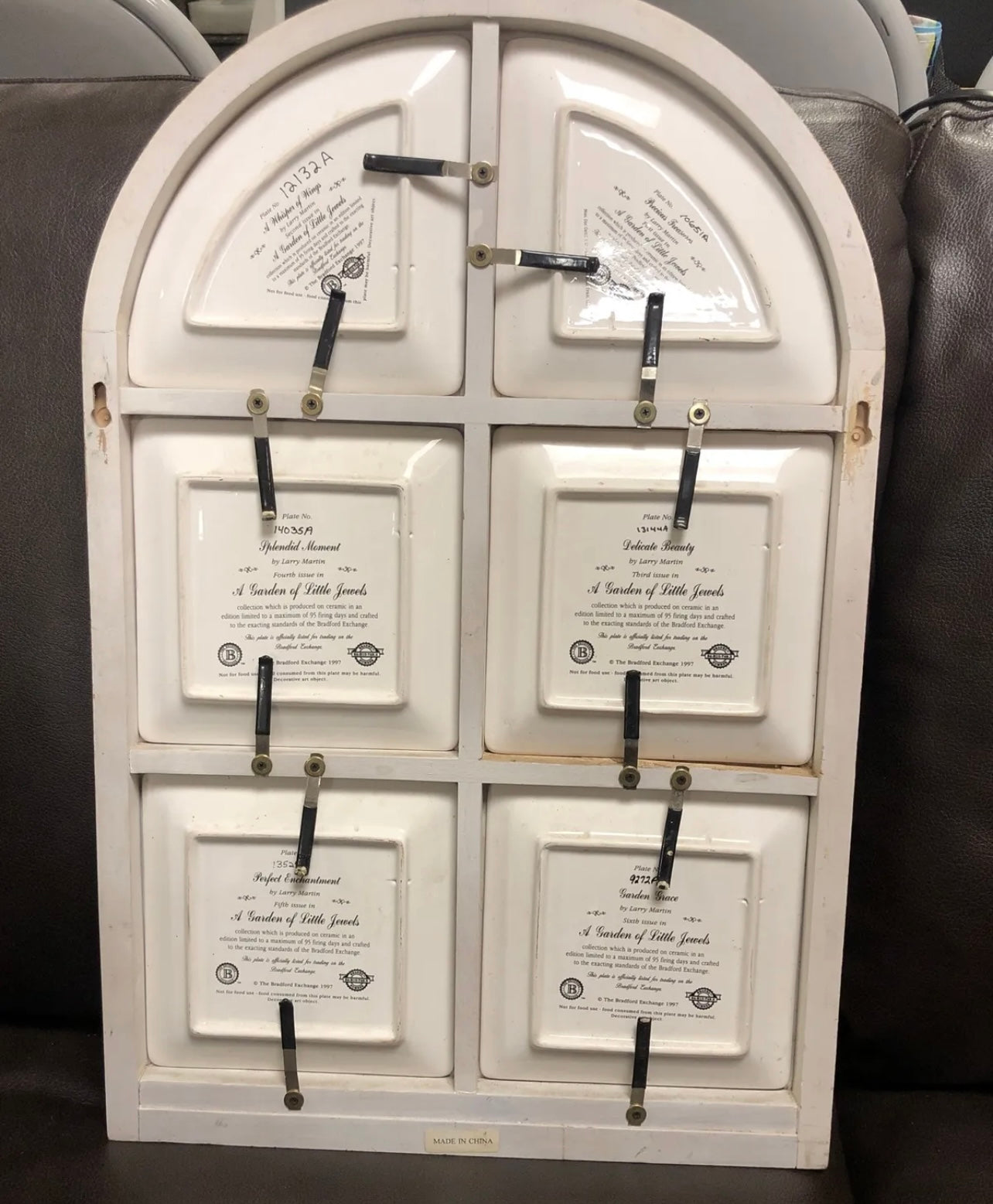 6 HUMMINGBIRD PLATES LARRY K. MARTIN “A GARDEN of LITTLE JEWELS” w Arch Display. Please look at all photos carefully for measurements and condition. This is a beautiful piece they will go in any room in the house. |