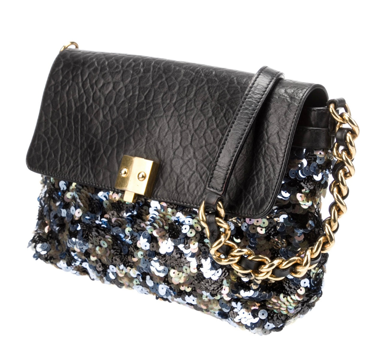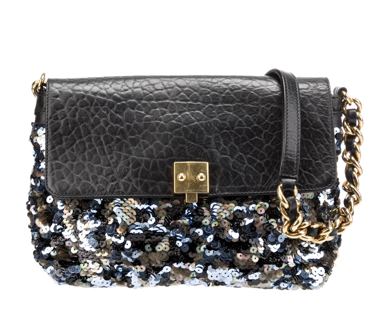Authentic Marc Jacobs Sequined Leather-trimmed Flap Satchel Handbag
