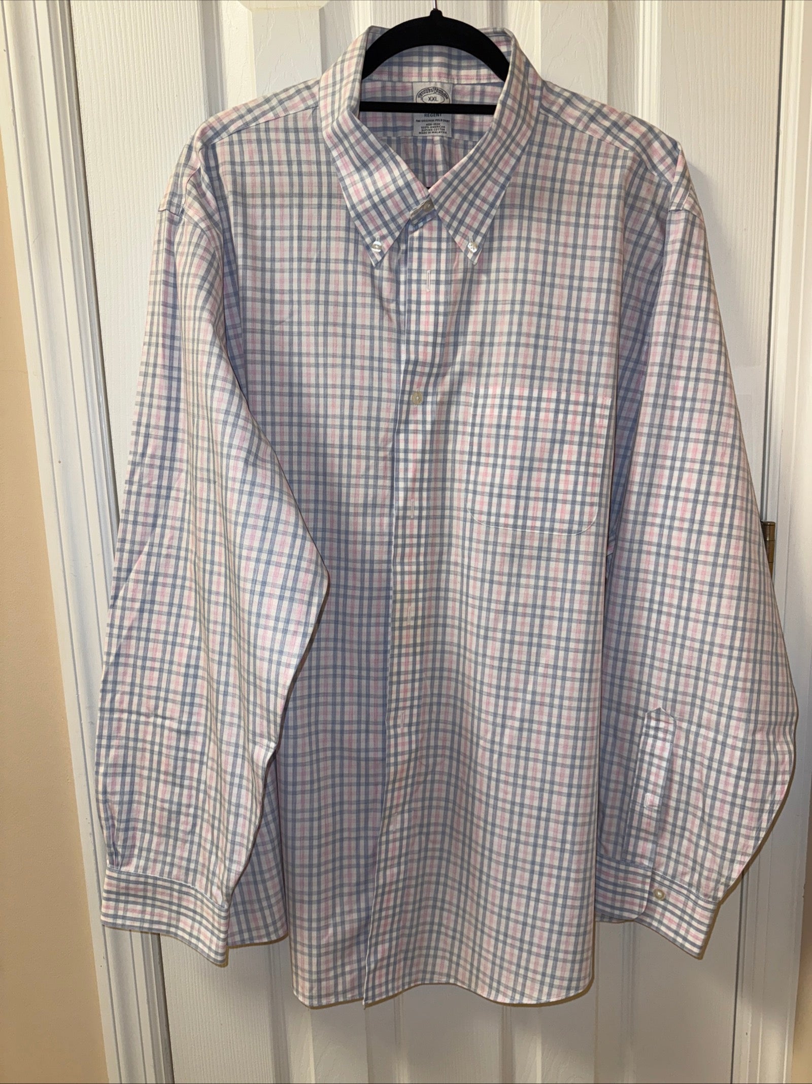 Brooks Brothers Shirt Men's XXL Pink Blue Plaid Regent Fit Button Down