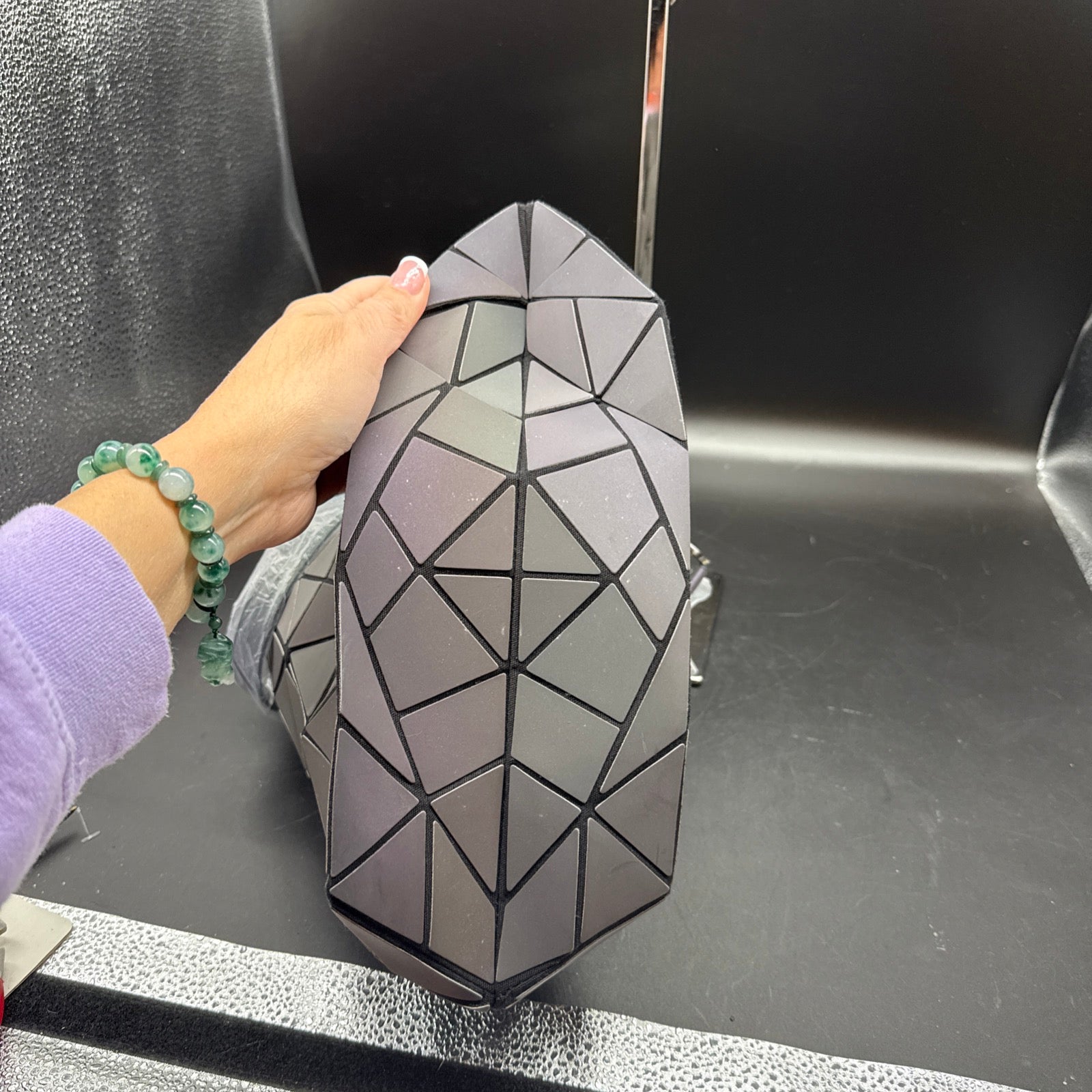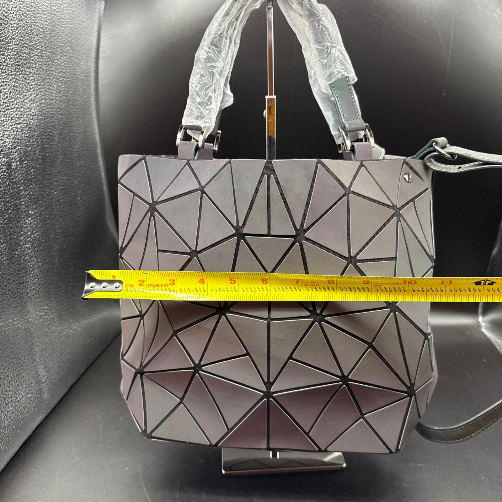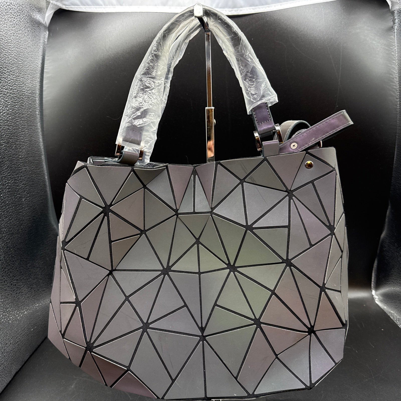 This crossbody purse is perfect for the stylish and practical woman on-the-go. With its geometric pattern and reflective features, this purse is both eye-catching and functional. The medium size provides plenty of space for your essentials, while the multiple pockets and compartments allow for easy organization.