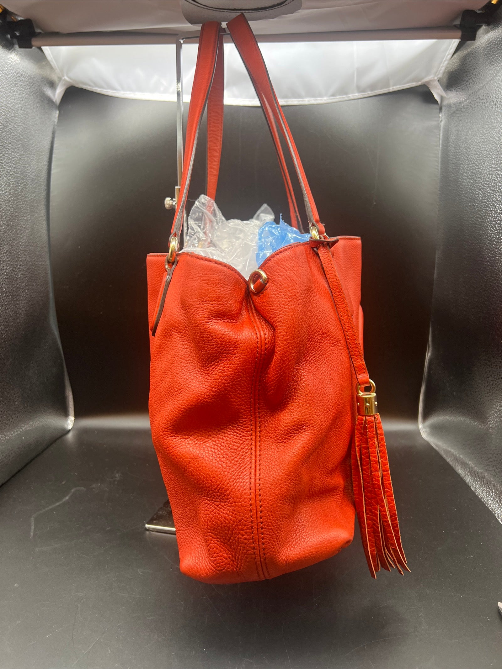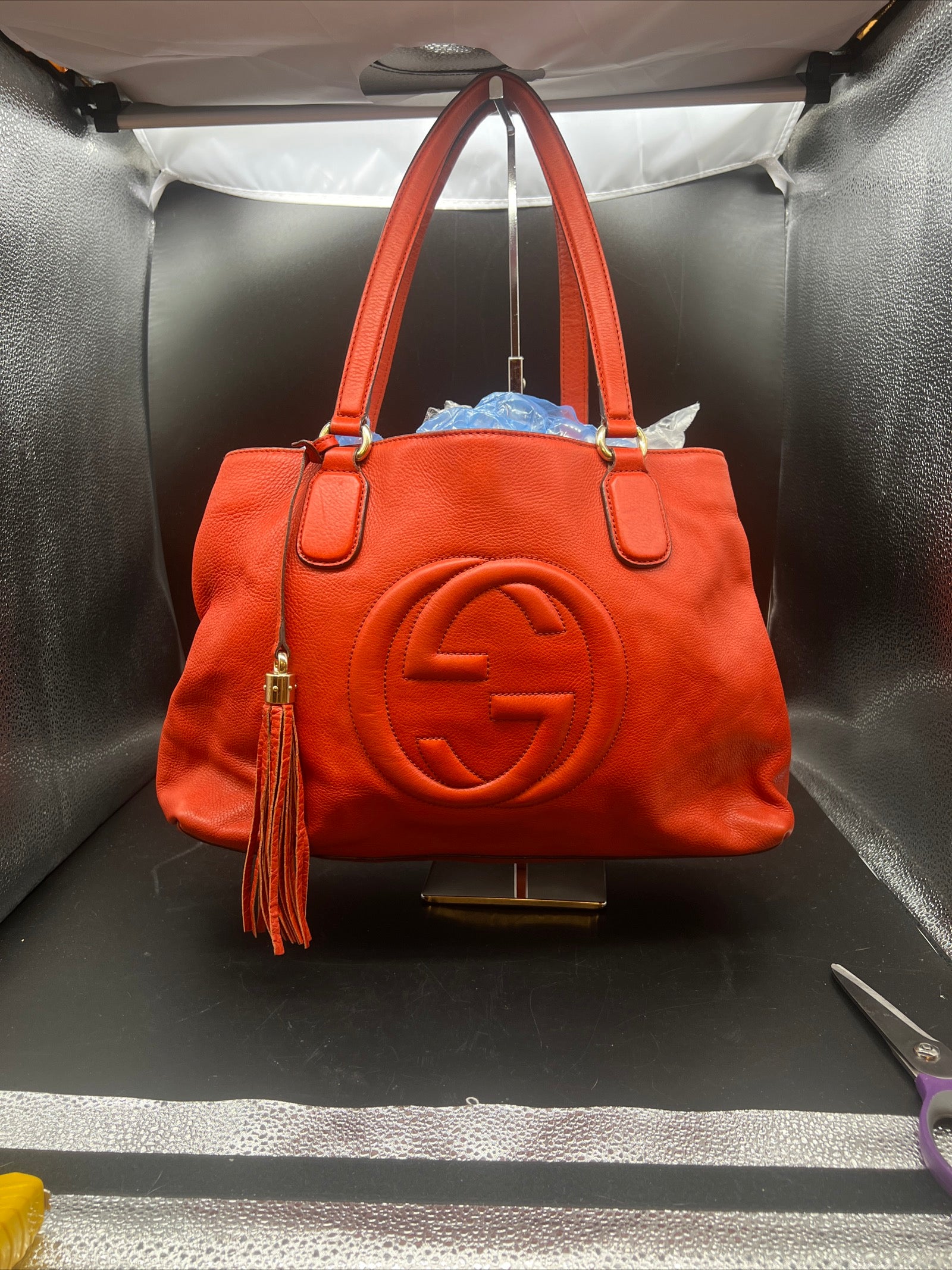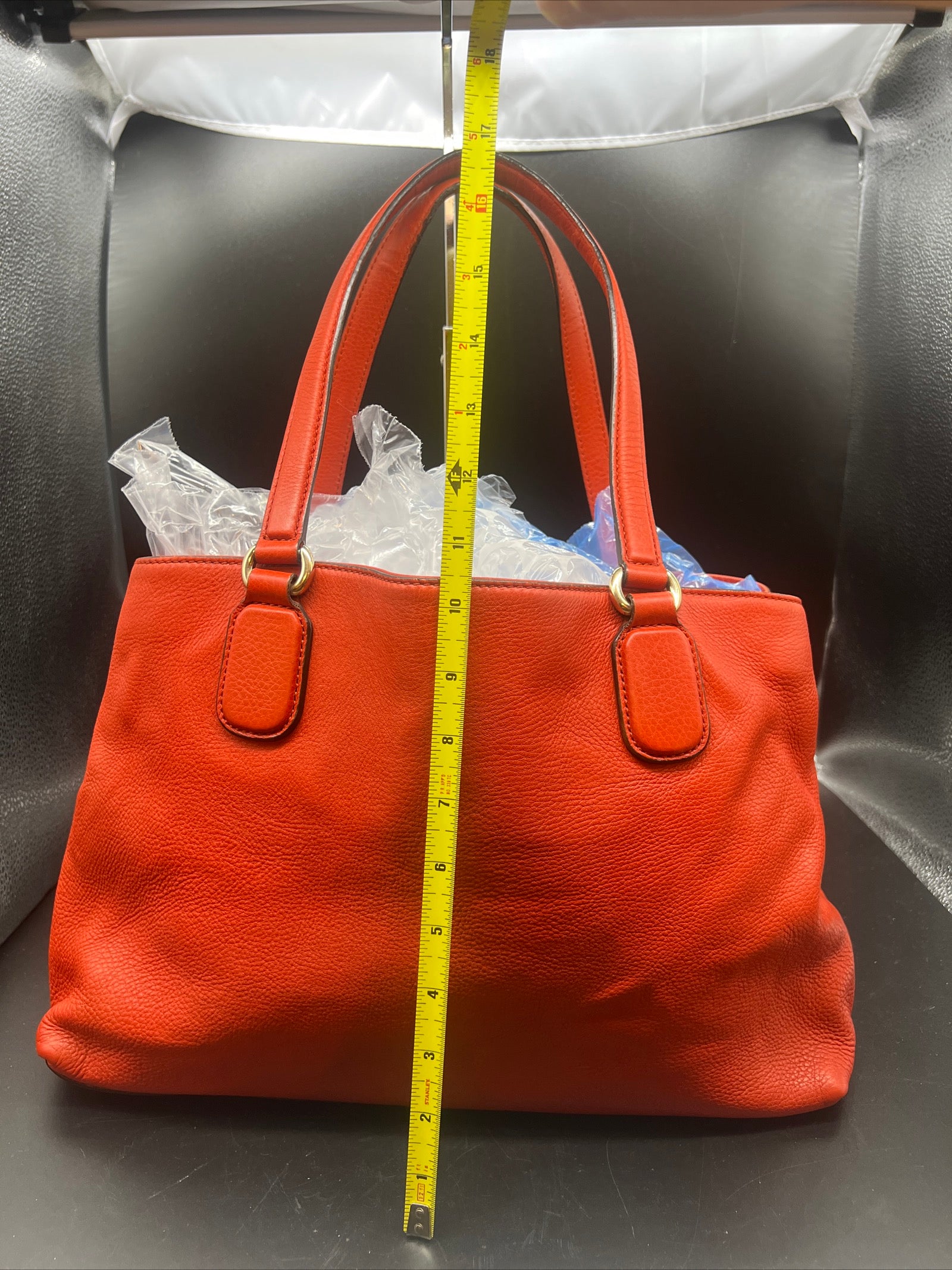 Gucci Soho Tote Shoulder Bag Calf-Skin Leather Red.