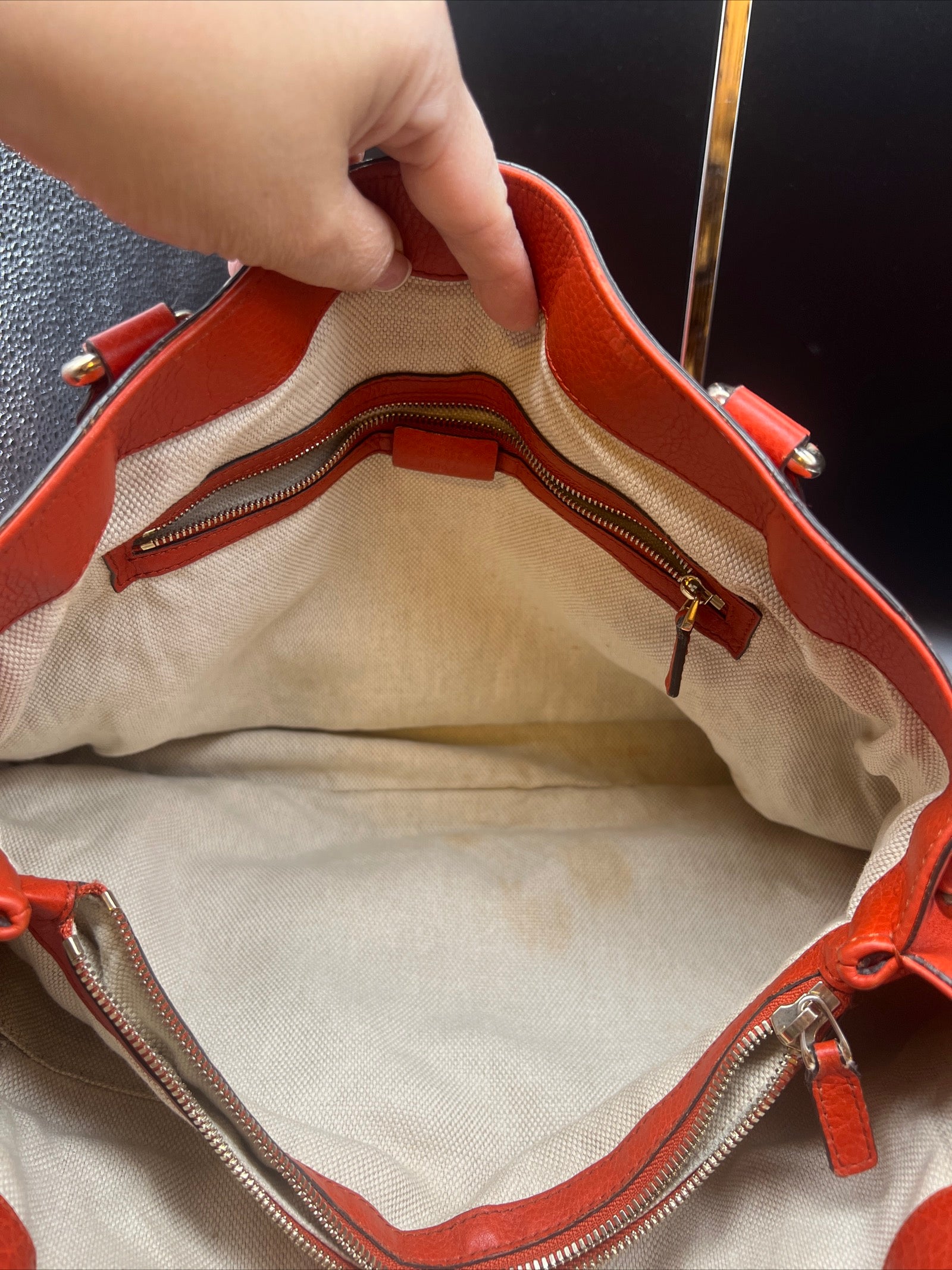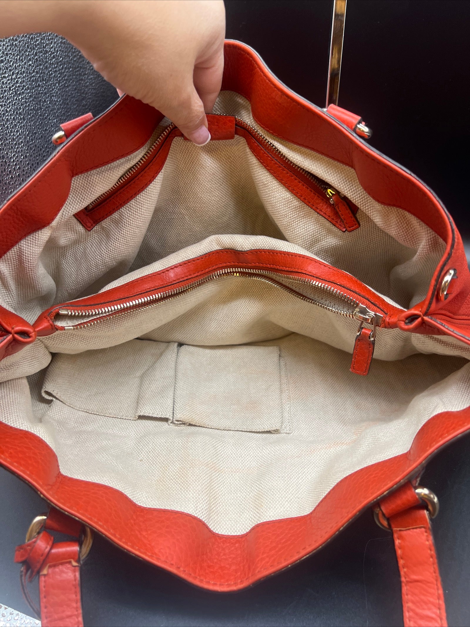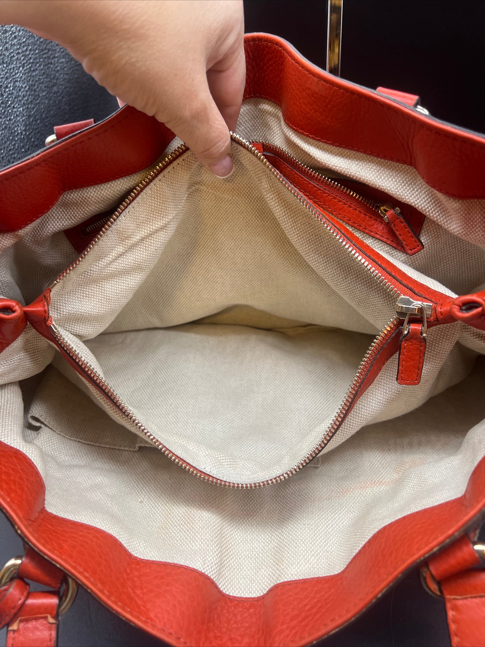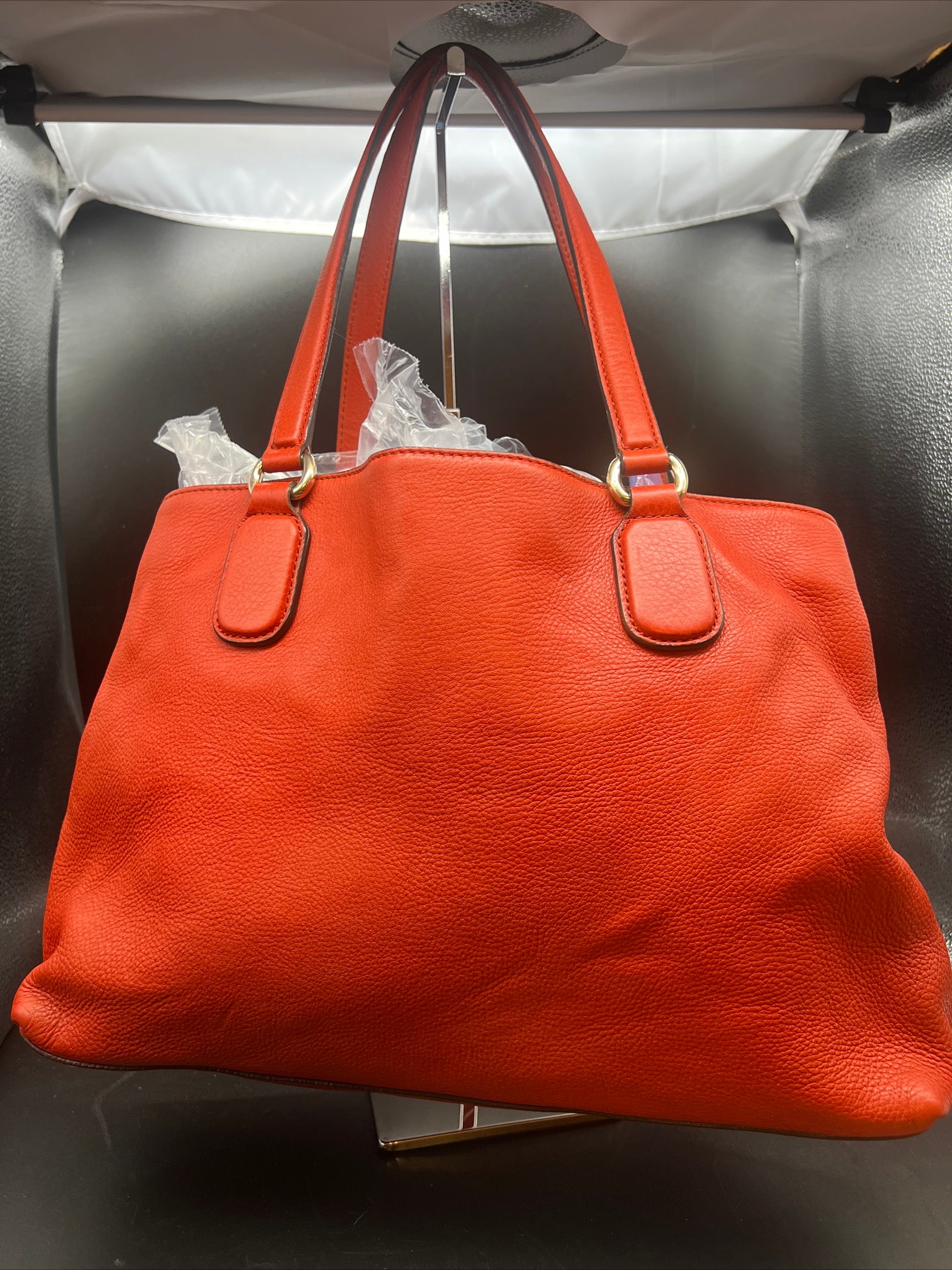 Gucci Soho Tote Shoulder Bag Calf-Skin Leather Red.