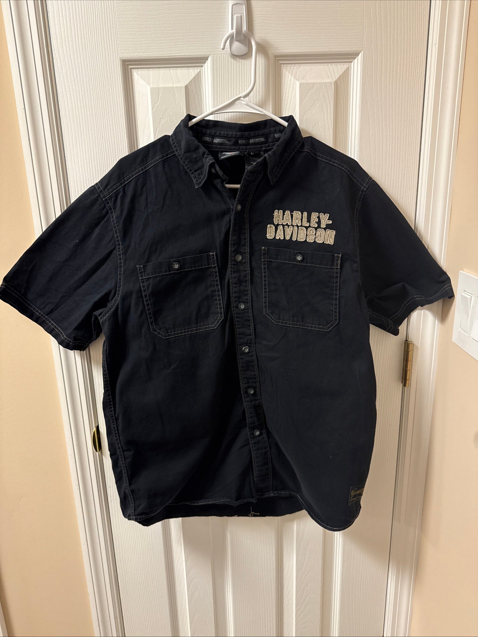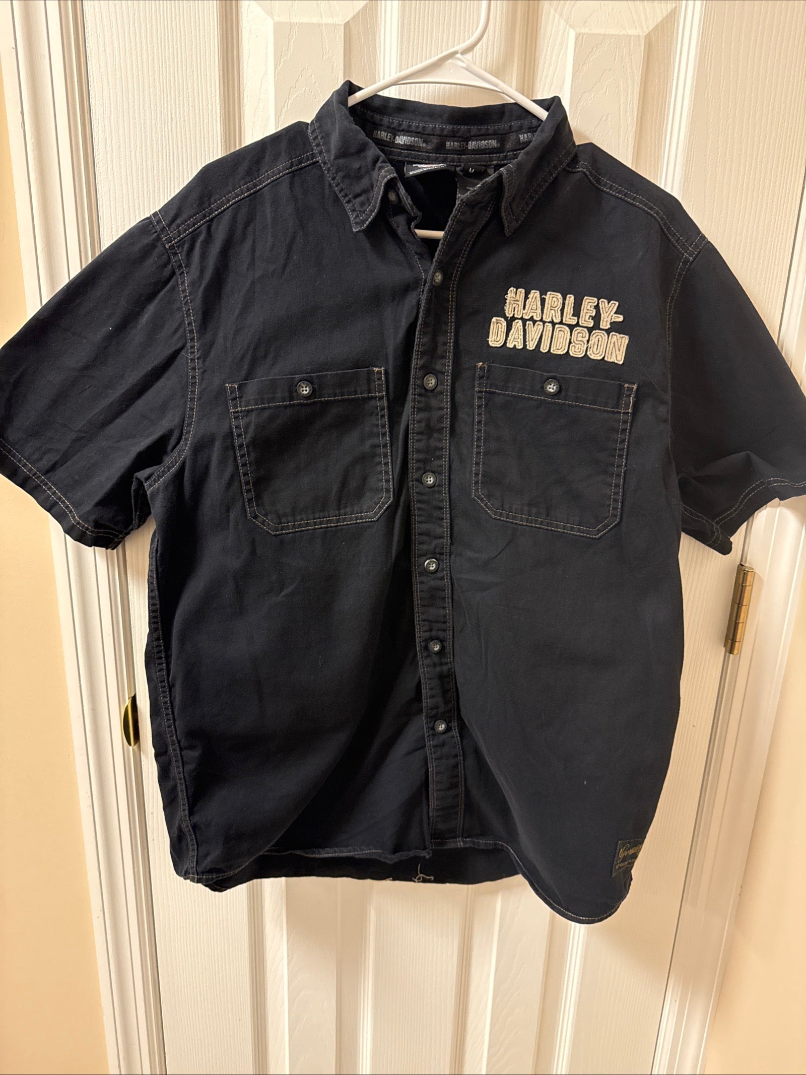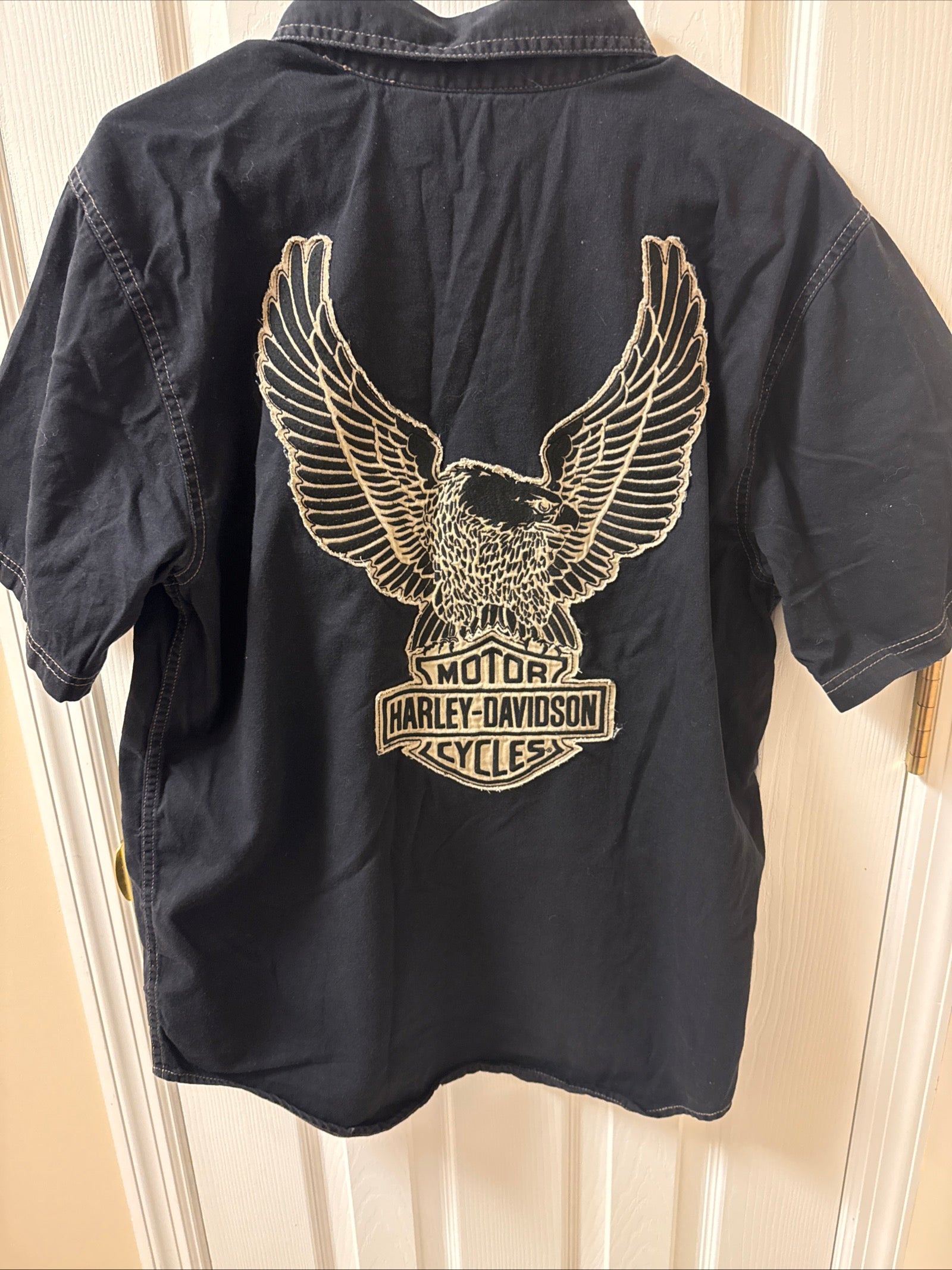 Harley Davidson Shirt Mens Medium Genuine Classic Eagle Short Sleeve Button Up