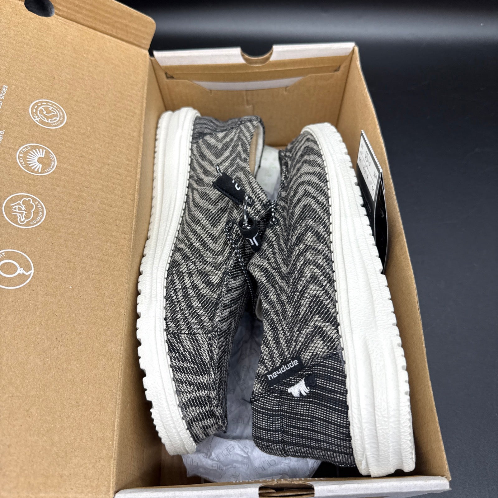 Hey Dude Ladies Wendy Woven Zebra Black Shoes 121414740. New in box