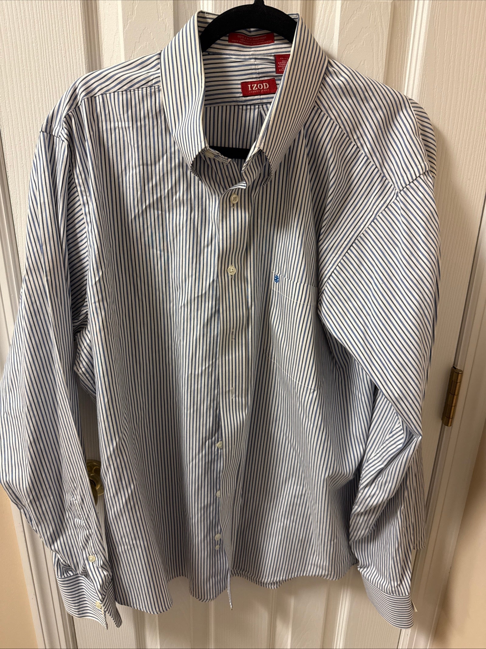 IZOD Dress Shirt Men's XL Collared Striped Long Sleeve Button Down