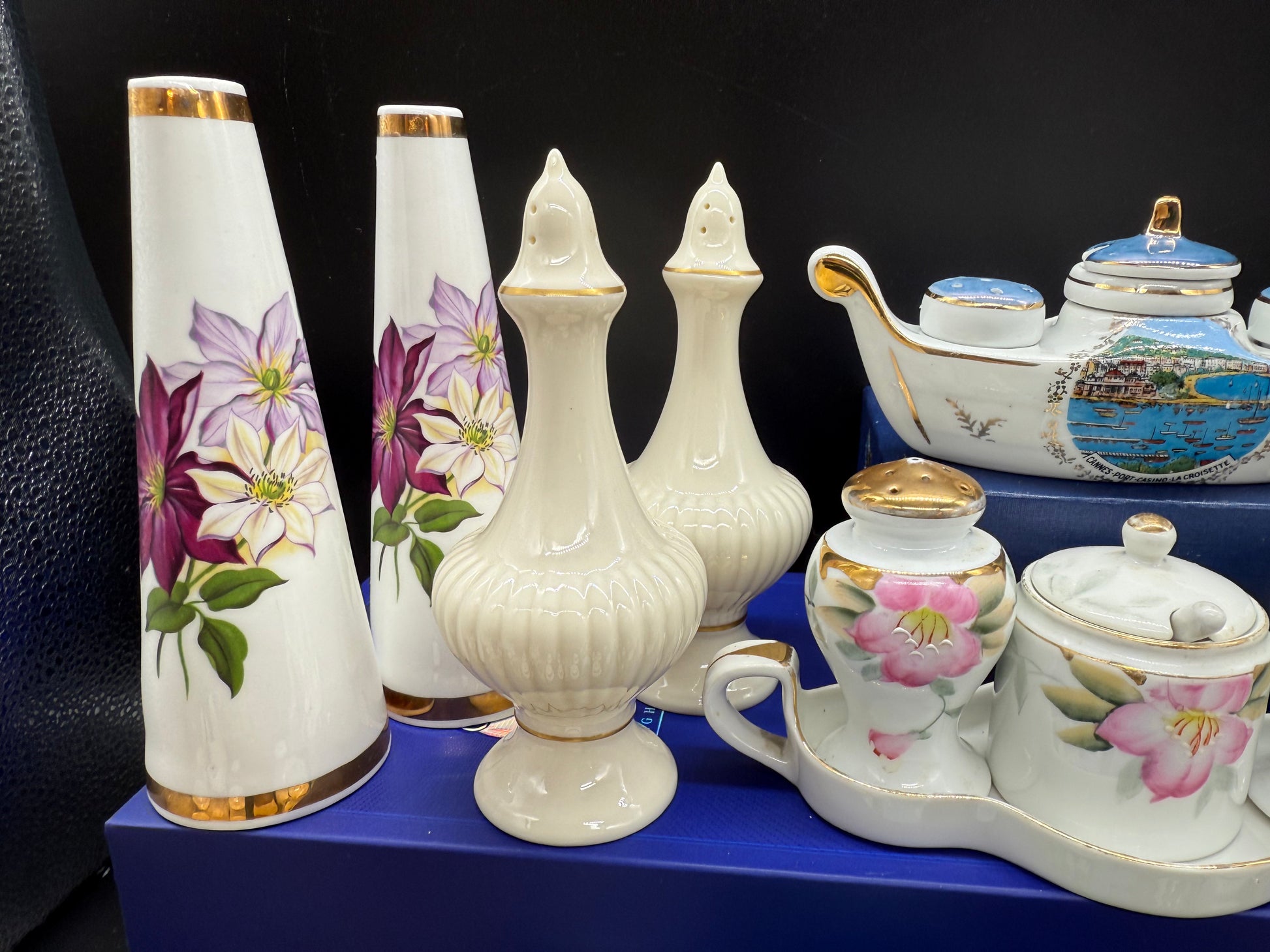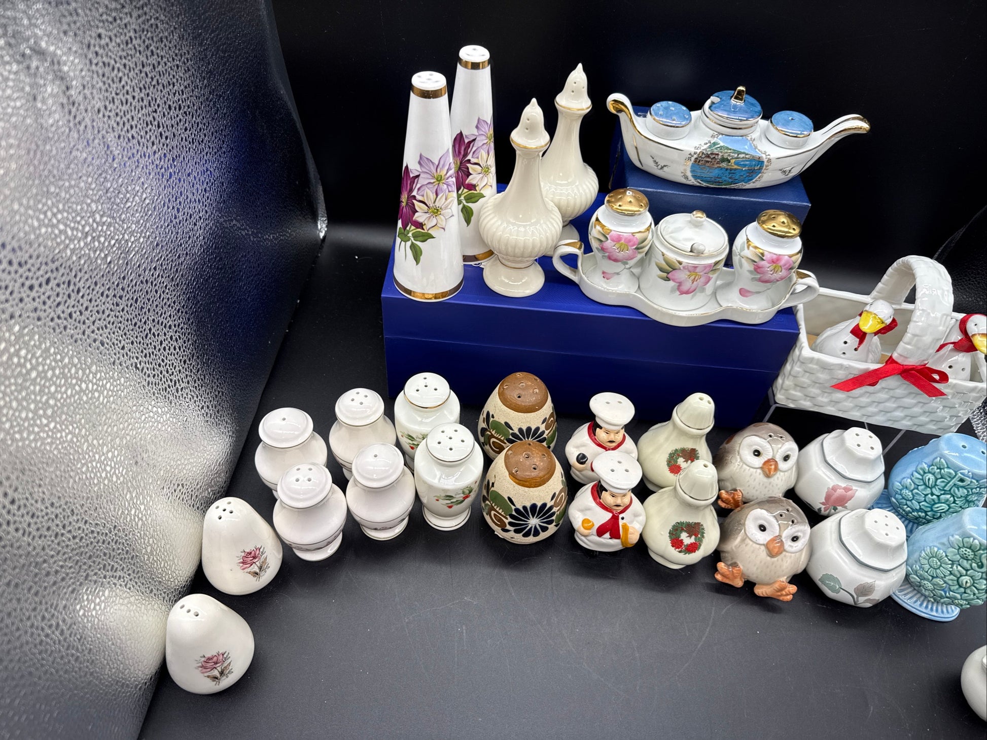 This lot of 16 S & P shakers includes a variety of ceramic and ceramic & porcelain pieces in multicolor.