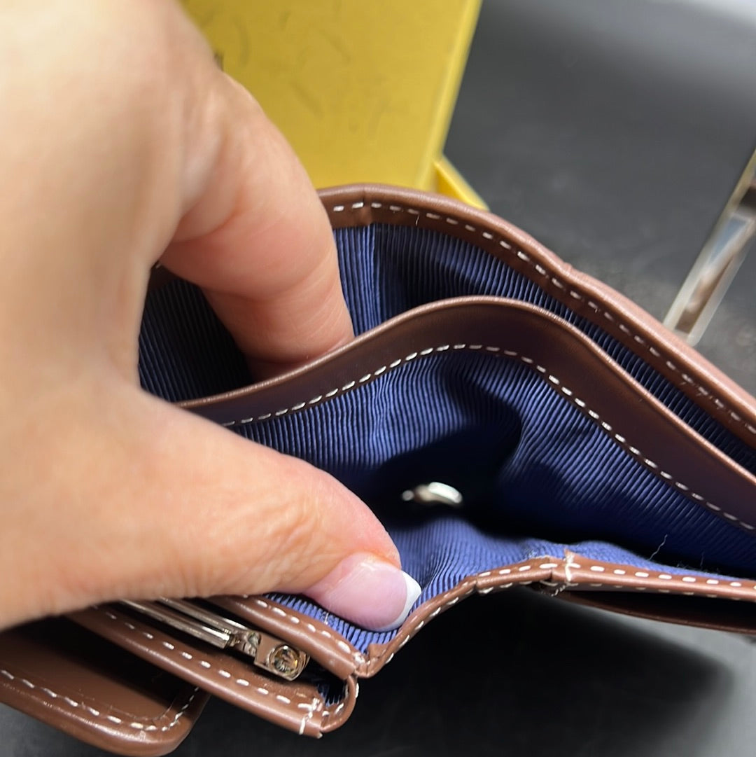 Please look at all photos carefully. This is a authentic piece. This wallet was gently used. No scratches or scuffs inside of the wallet.