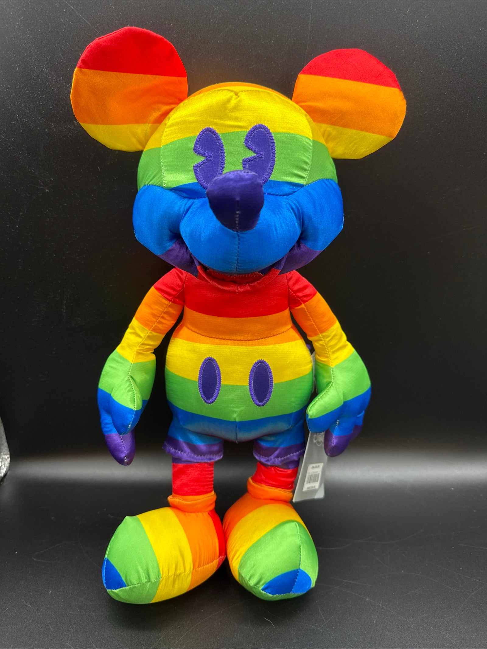 New-Disney Parks Rainbow Gay Pride Mickey Mouse Plush LGBTQ+ 15 Inches Satin