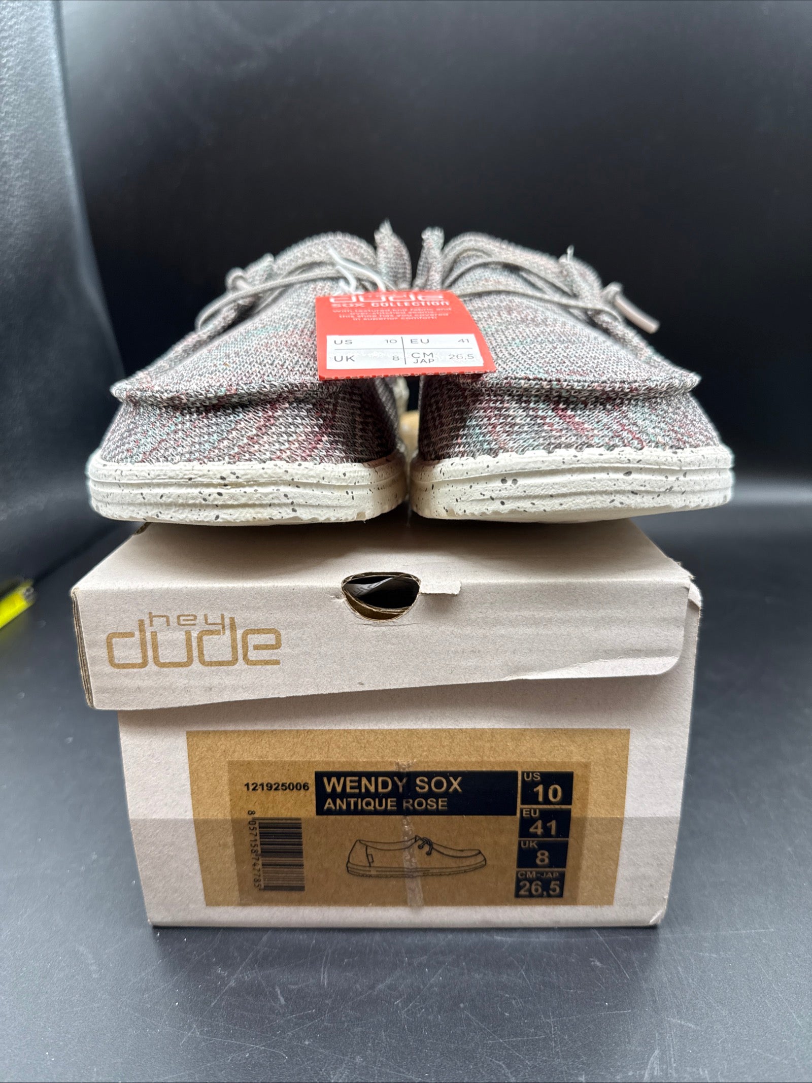 NIB-Hey Dude Wendy Sox Antique Rose Women's Size 10 Shoes Slip On Casual