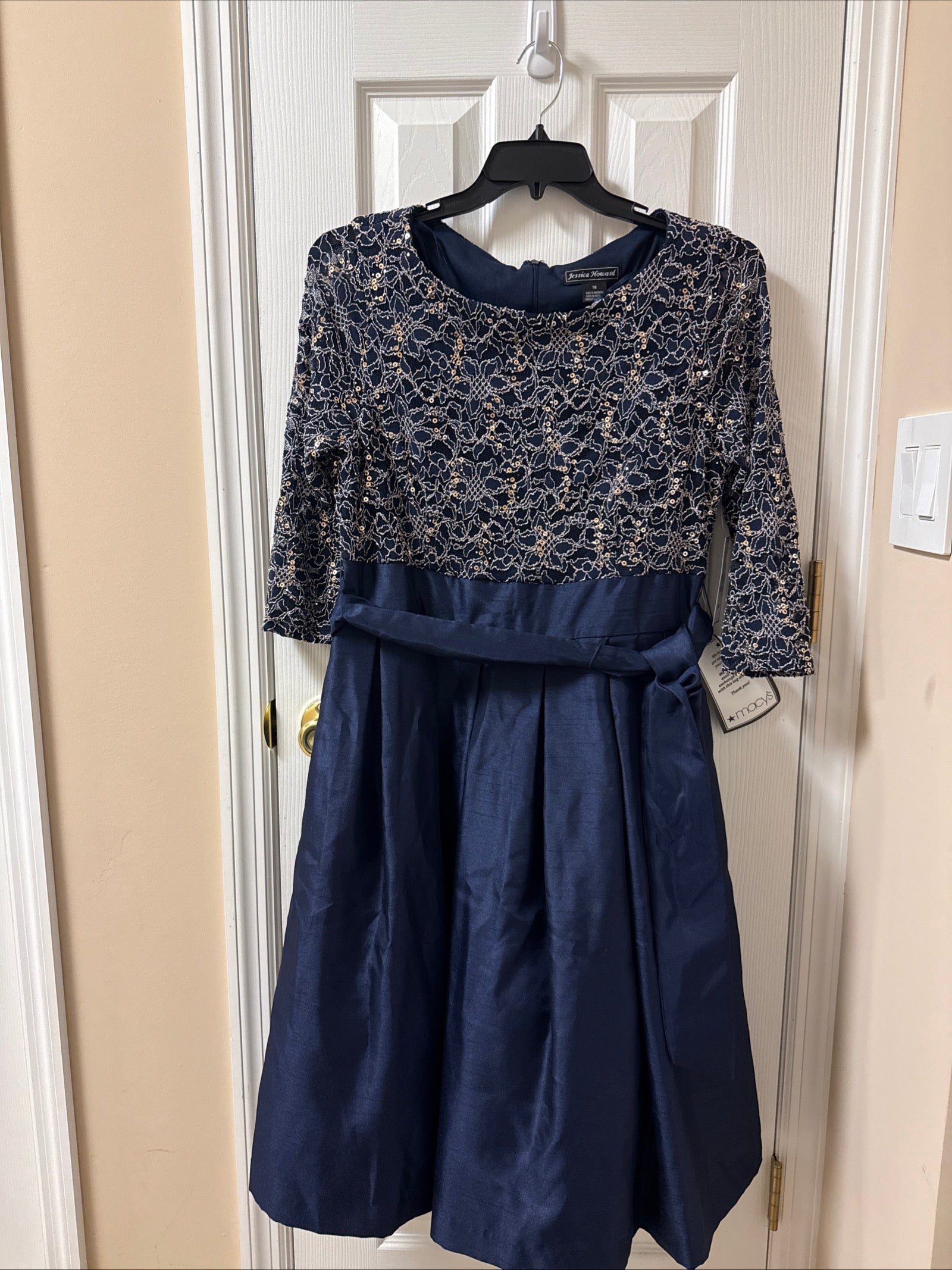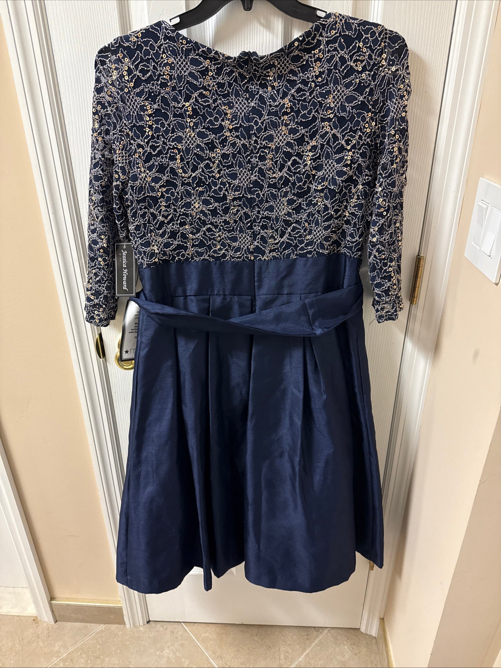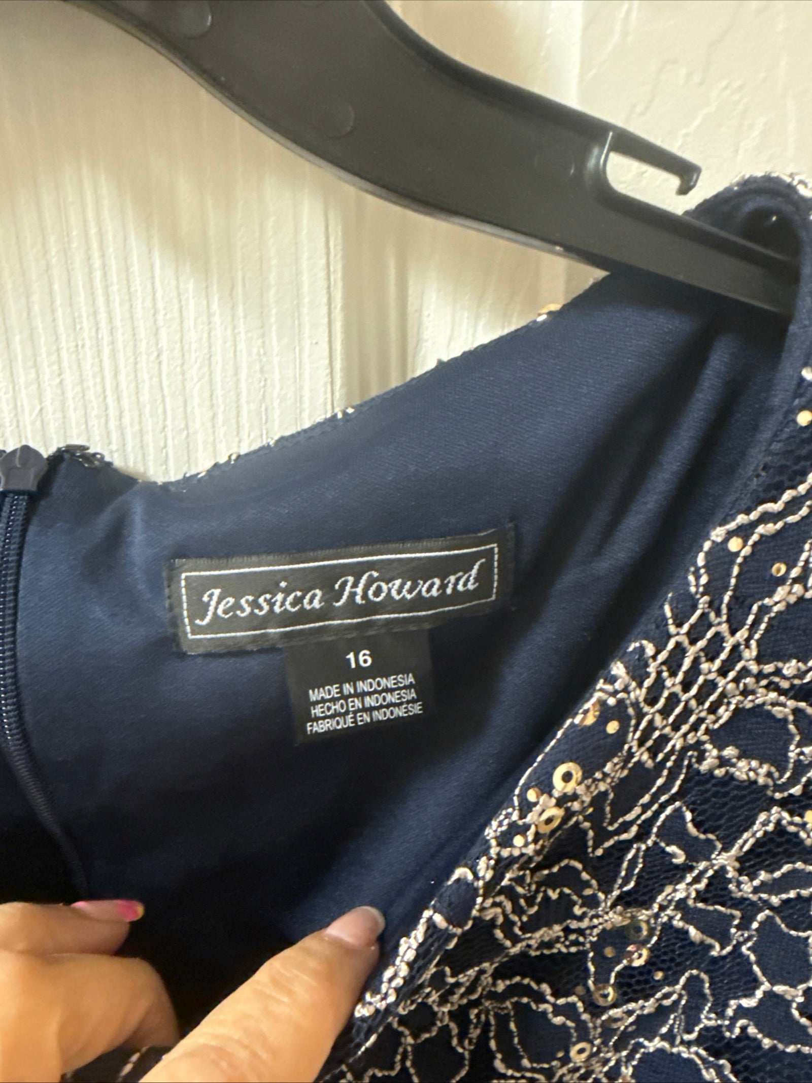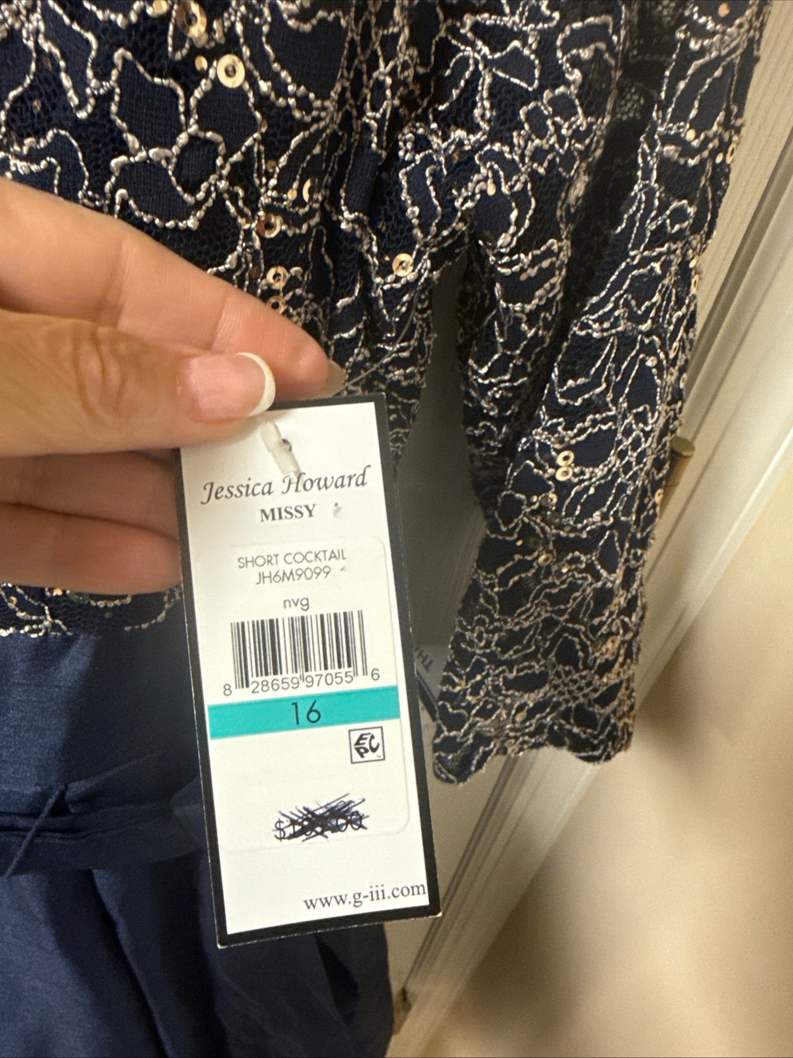 NWT Jessica Howard Formal Cocktail Dress Navy Blue Chiffon Sequence Missy 16