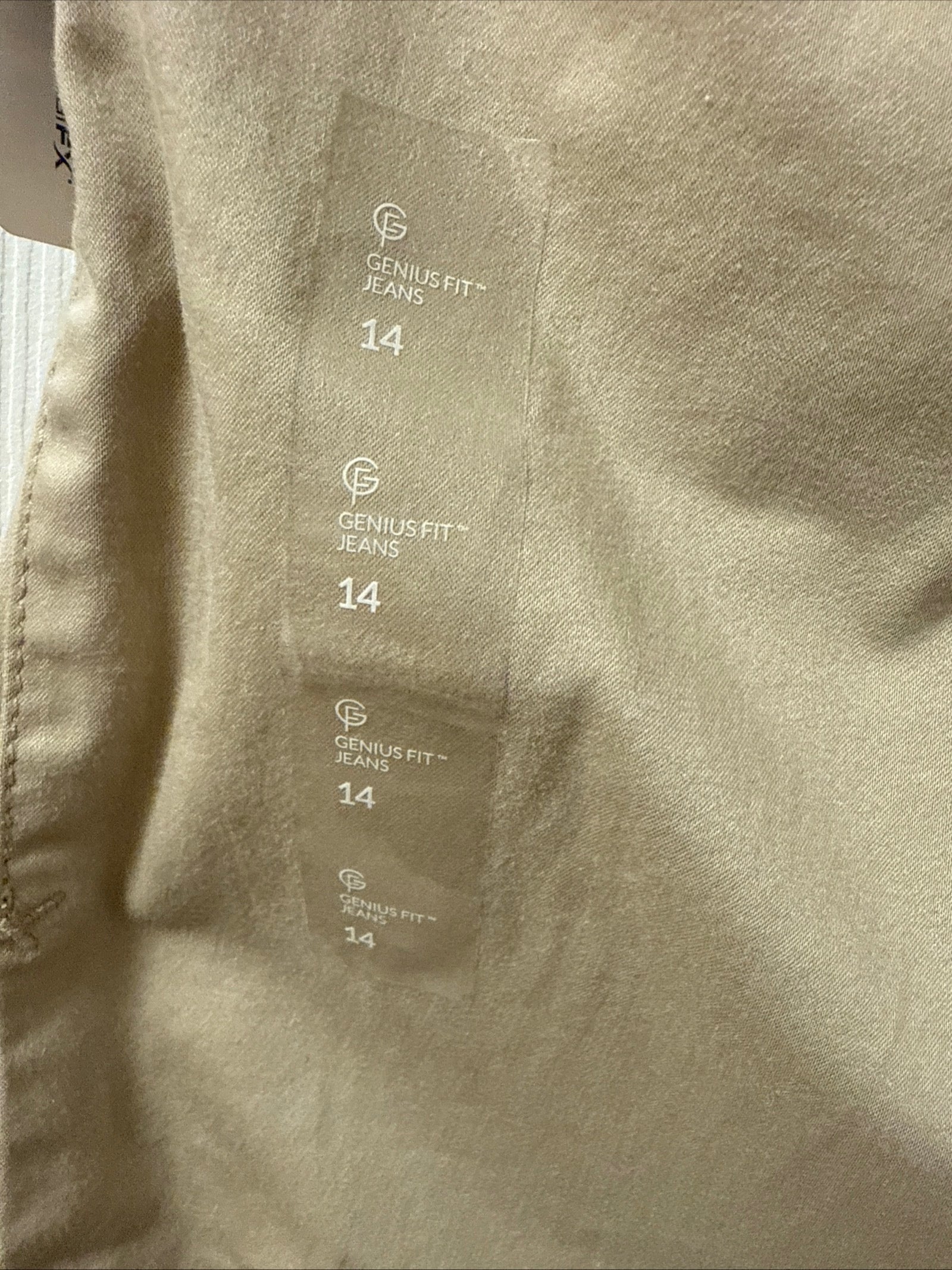 The product is a pair of NWT Lane Bryant Genius fit Crop Skinny Jeans in light denim. These jeans feature a distressed look, zip closure, machine washable fabric, and a low rise. They are size 14 with a 36-inch waist and have a 25-inch inseam. The jeans come in a classic blue color, have belt loops, and a 5-pocket design. They are suitable for all seasons and are an ideal choice for women looking for a comfortable and stylish fit.