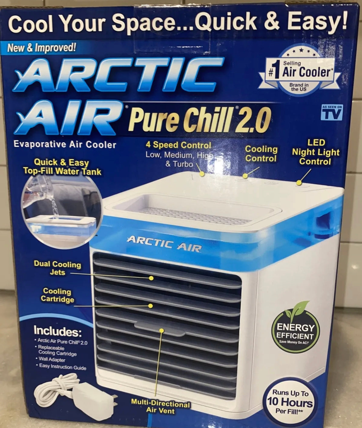 Upgrade your indoor air quality with the Arctic Air Pure Chill 2.0 Evaporative Personal Cooler Portable Fan Table Top. This Corded Electric Air Cooler is made of ABS Plastic and sturdy Plastic material to last you a long time. With 4 different Number of Speeds, it has an Adjustable Tilt/Head which allows you to change the direction of the air flow as per your convenience.