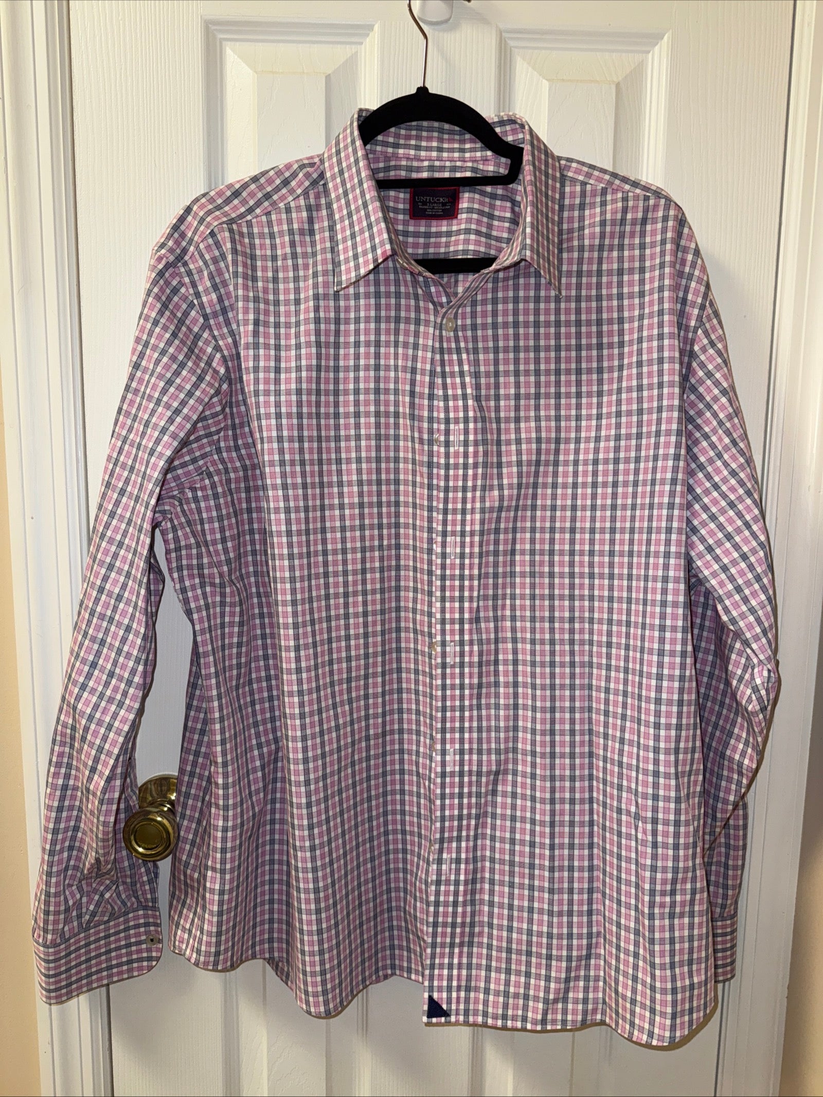 UNTUCKit Shirt Mens Blue Pink Button Up Dress Oxford Work Office Adult XL
