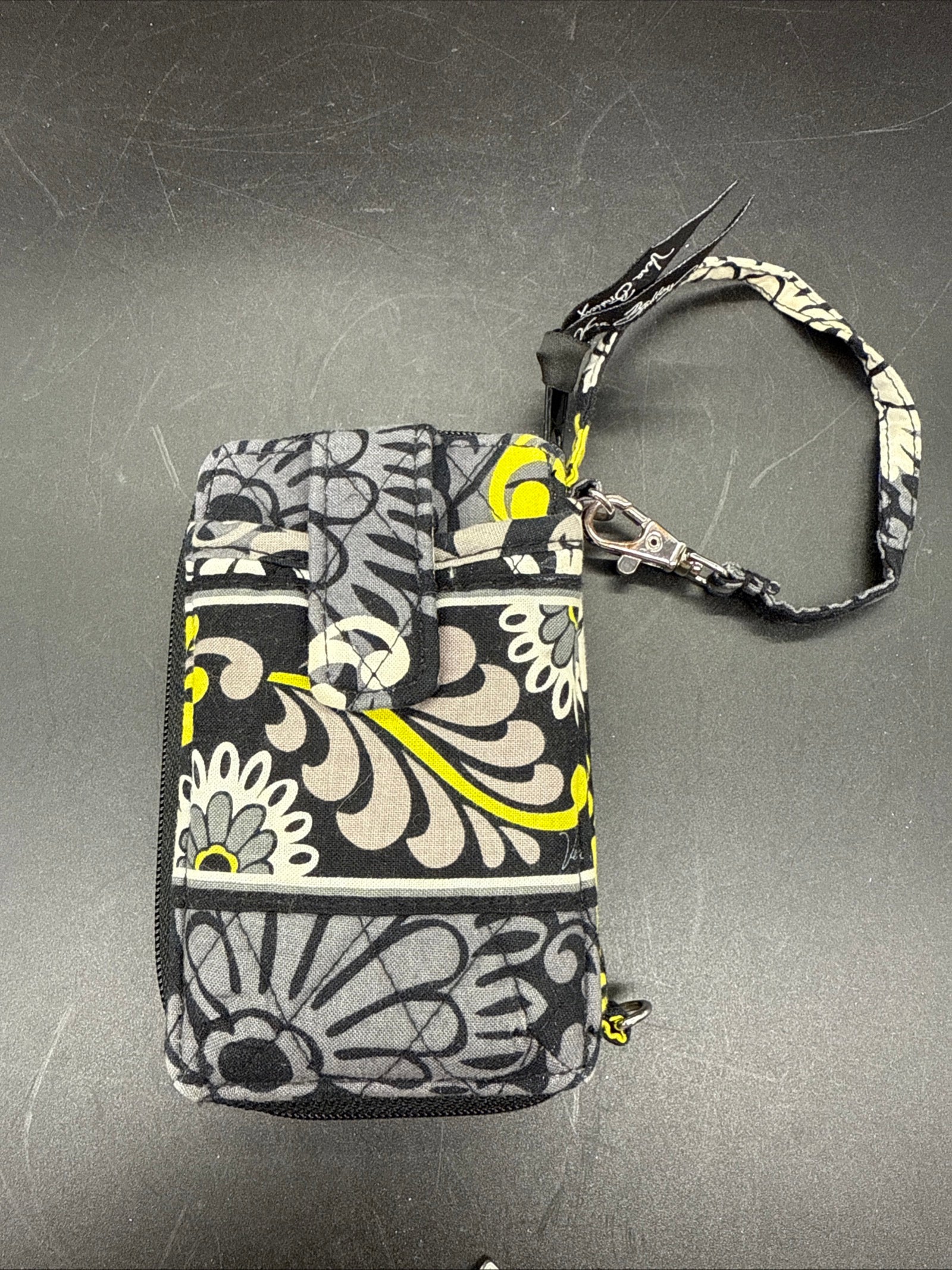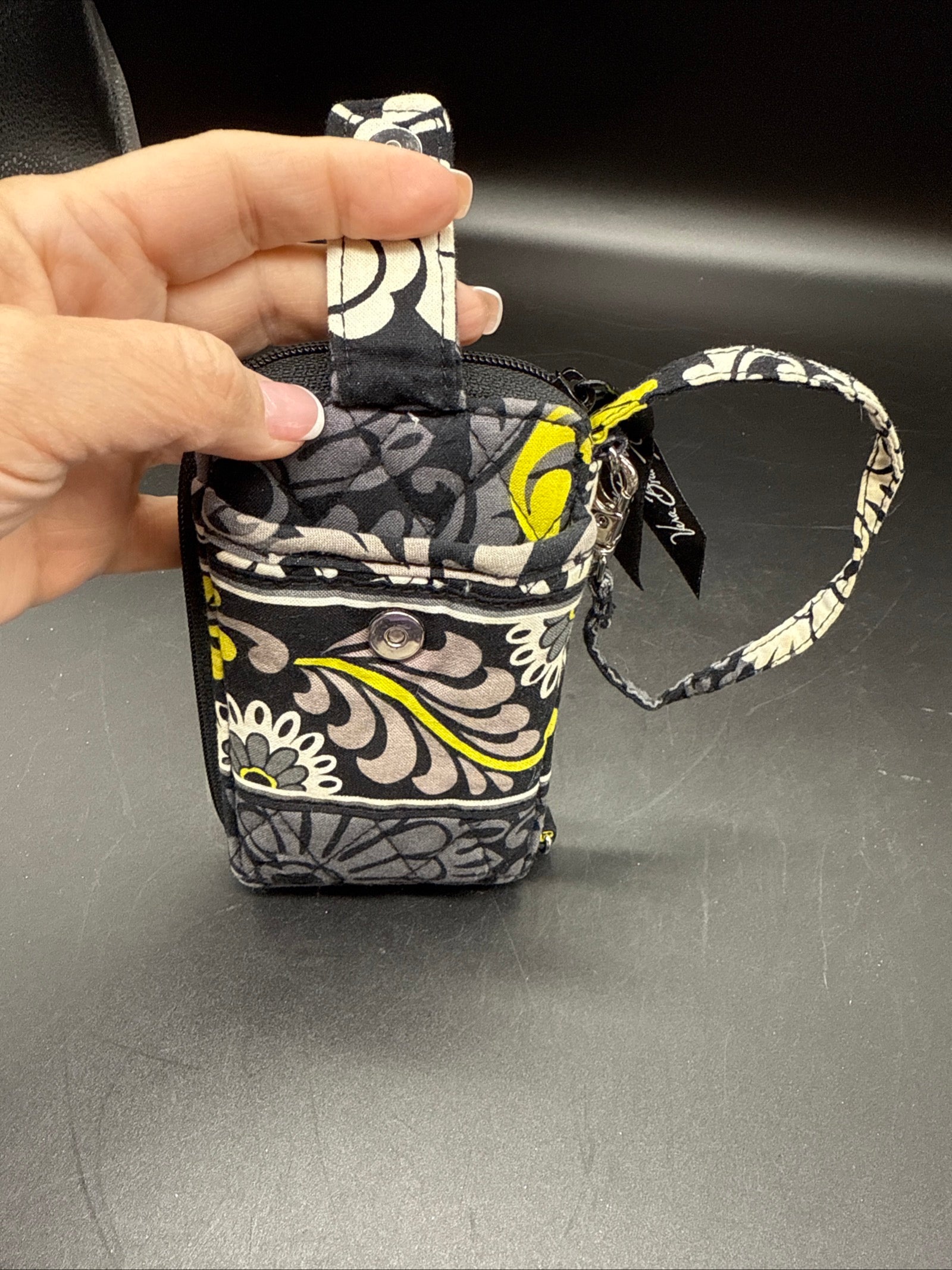Vera Bradley Baroque Black Gray Retired Pattern Coin ID Purse Wristlet Strap NWOT