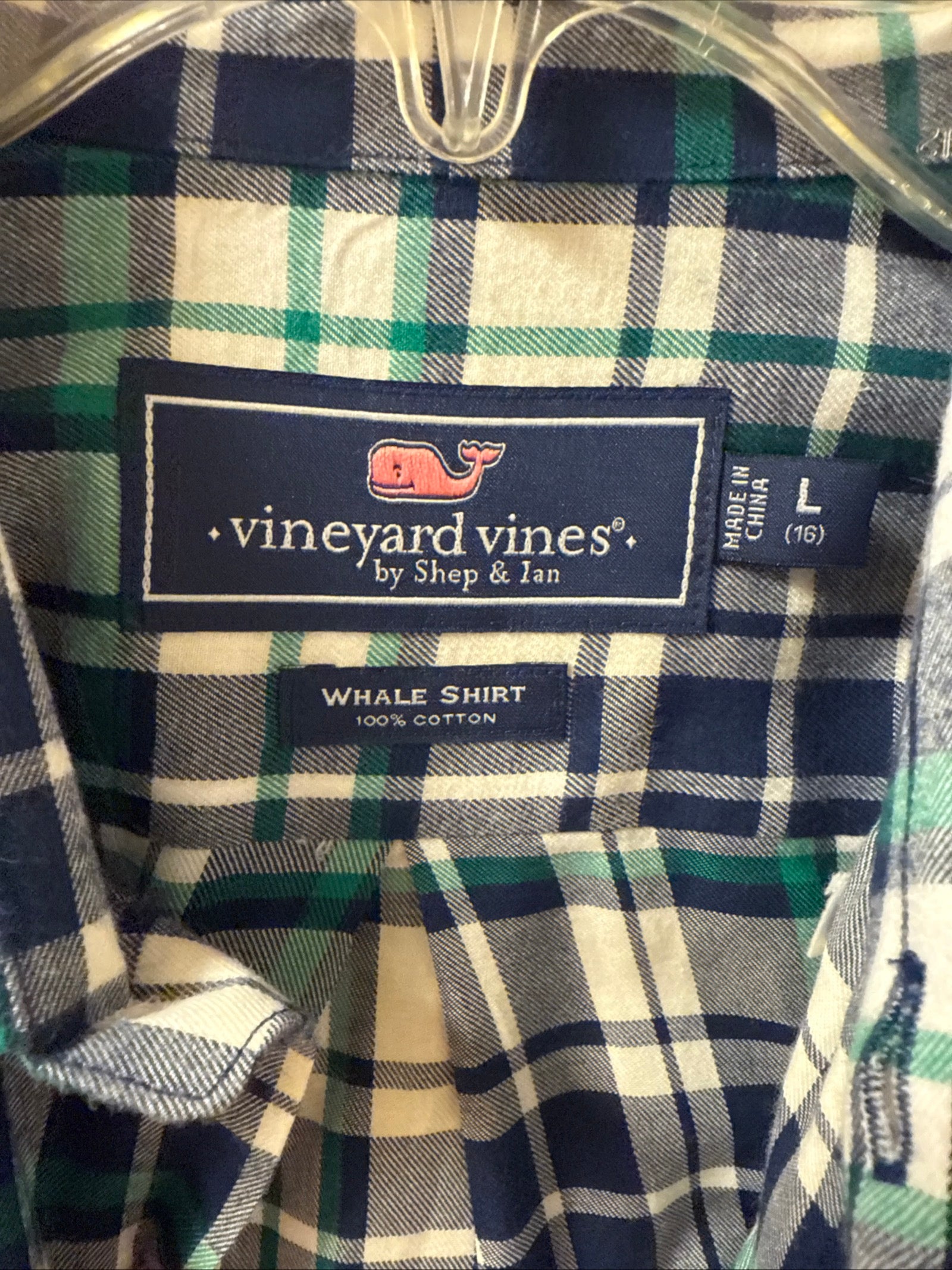 Vineyard Vines Button-Down Shirt Boys Large (16) 3 Color Plaid Whale Shirt