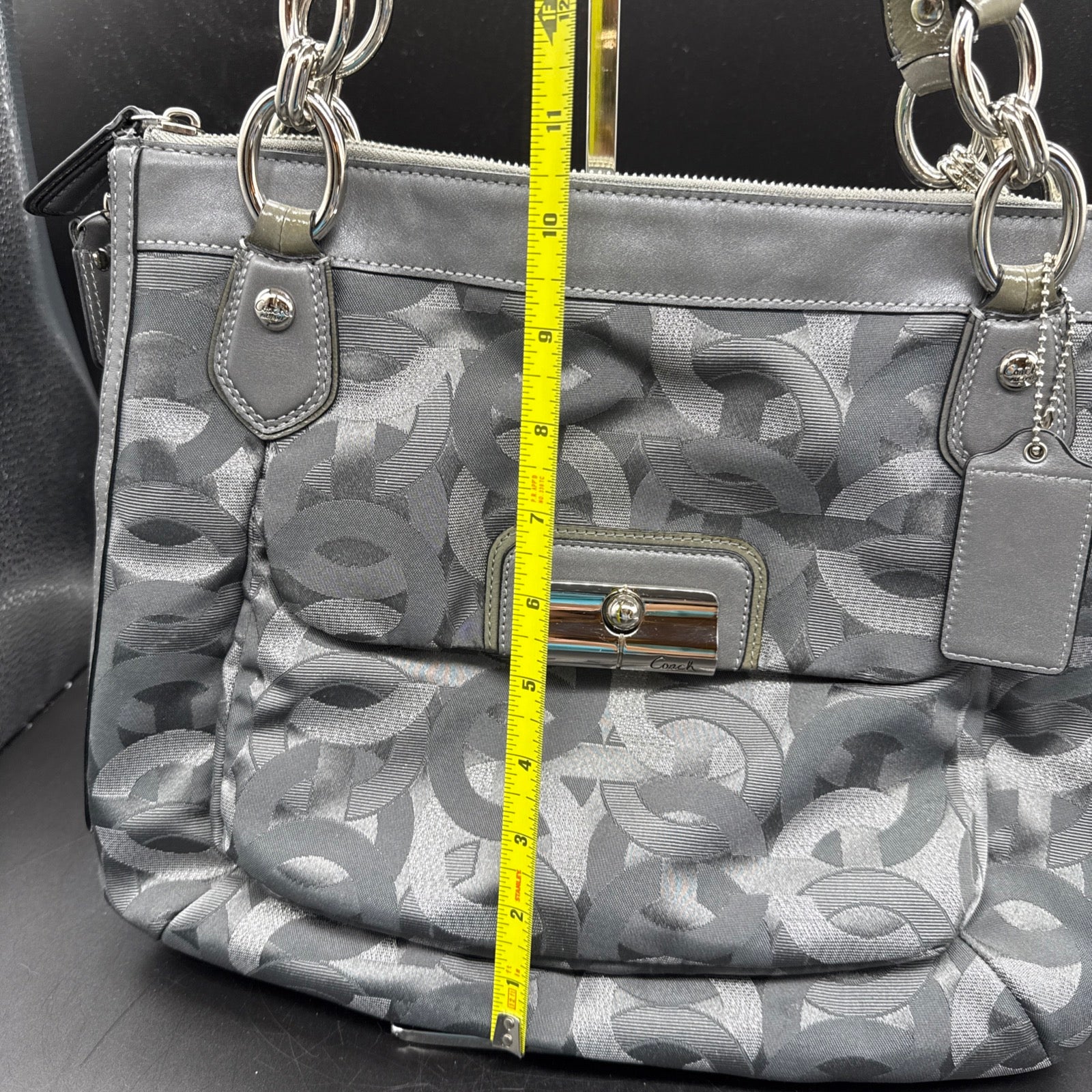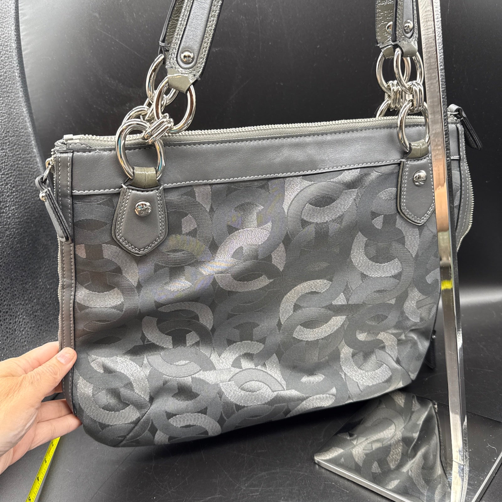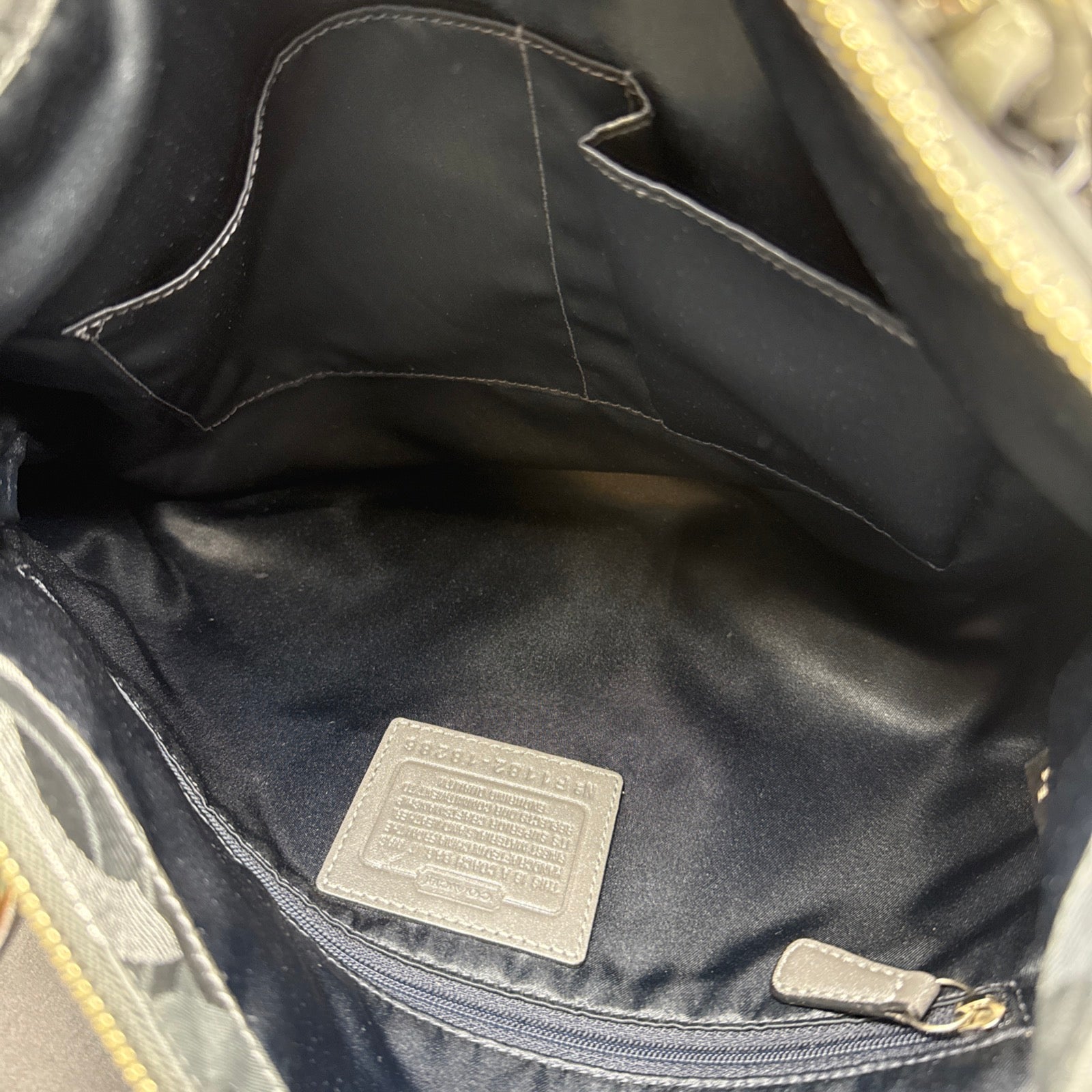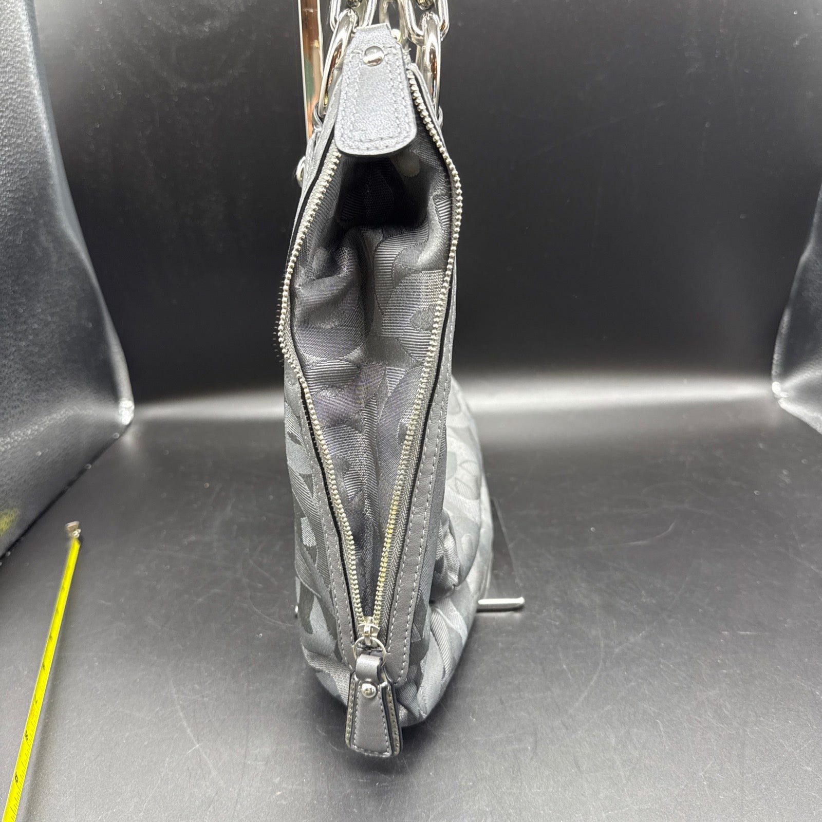 Vtg Coach Sig Kristin Silver Metalic Zip Expandable Bag F1182 18286