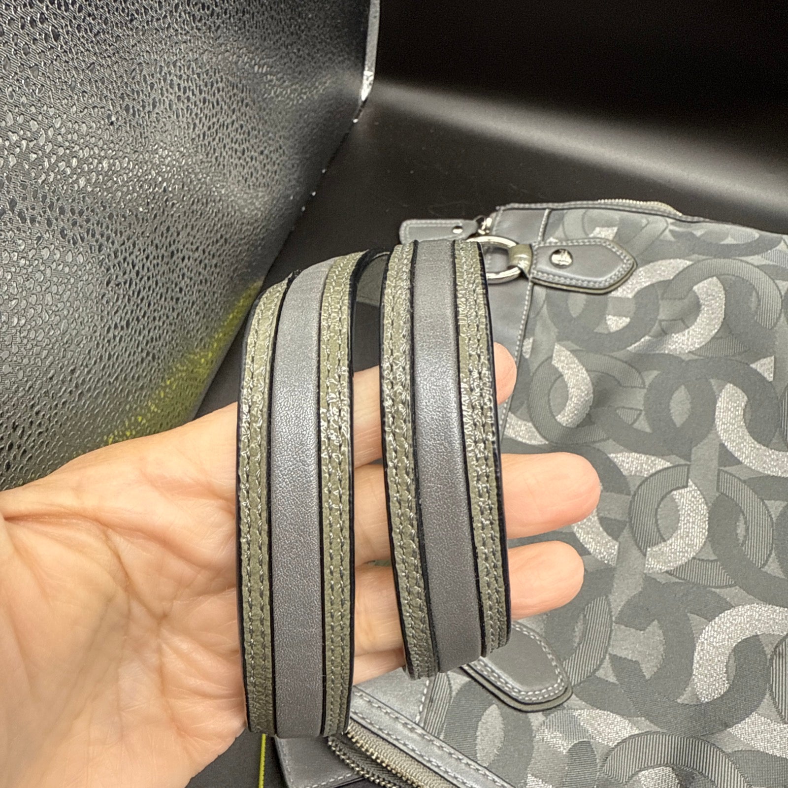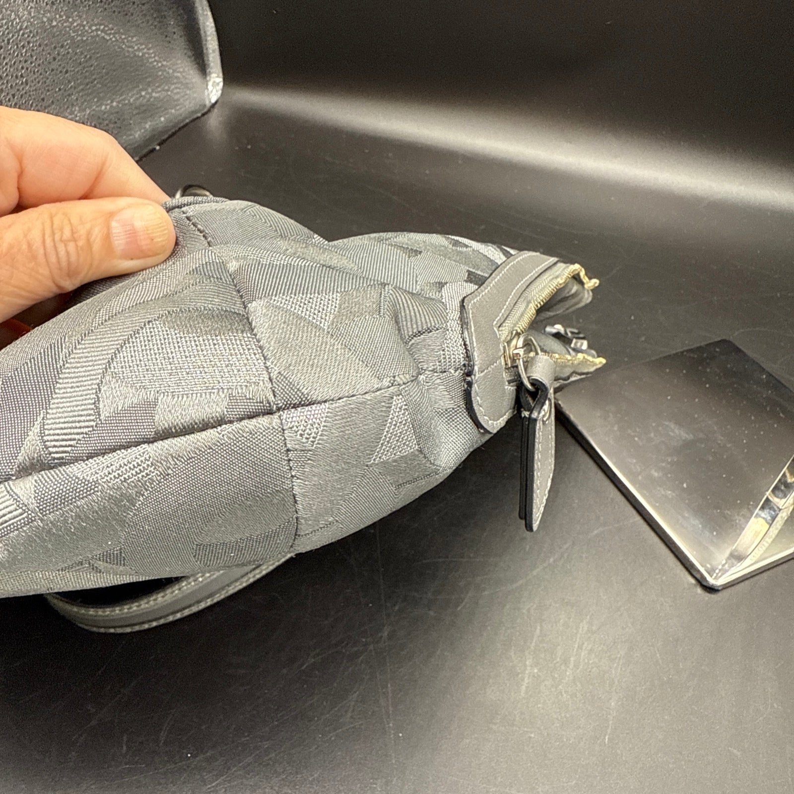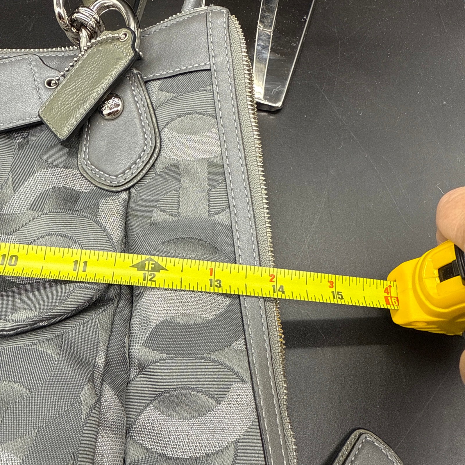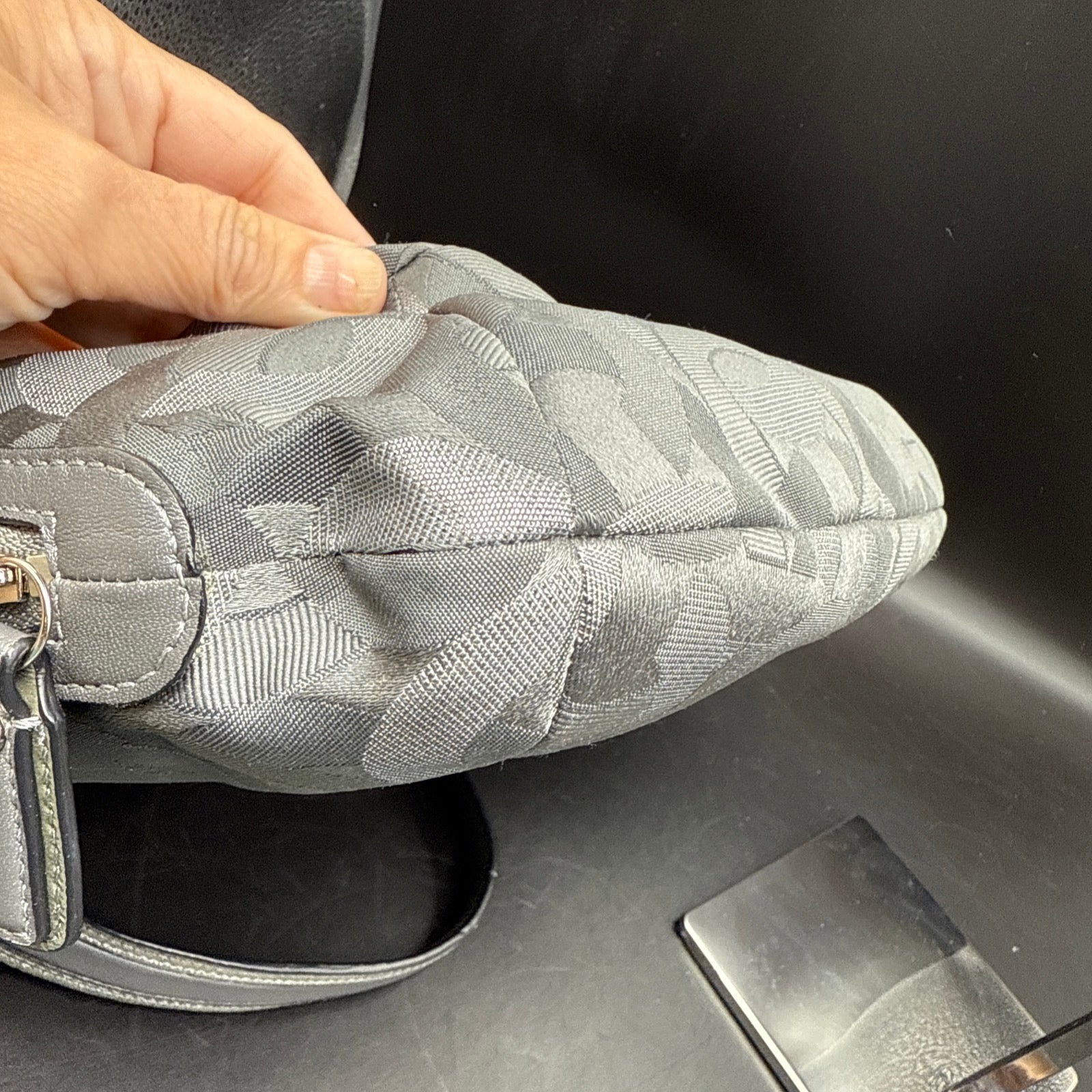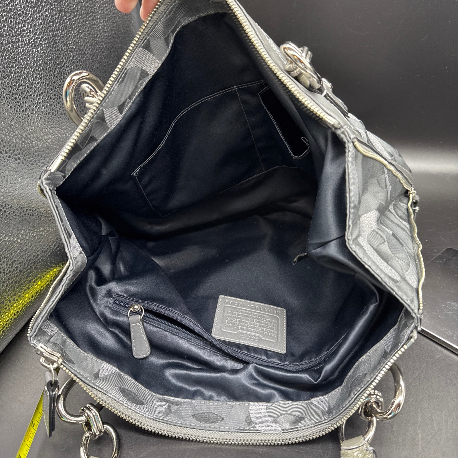 Vtg Coach Sig Kristin Silver Metalic Zip Expandable Bag F1182 18286