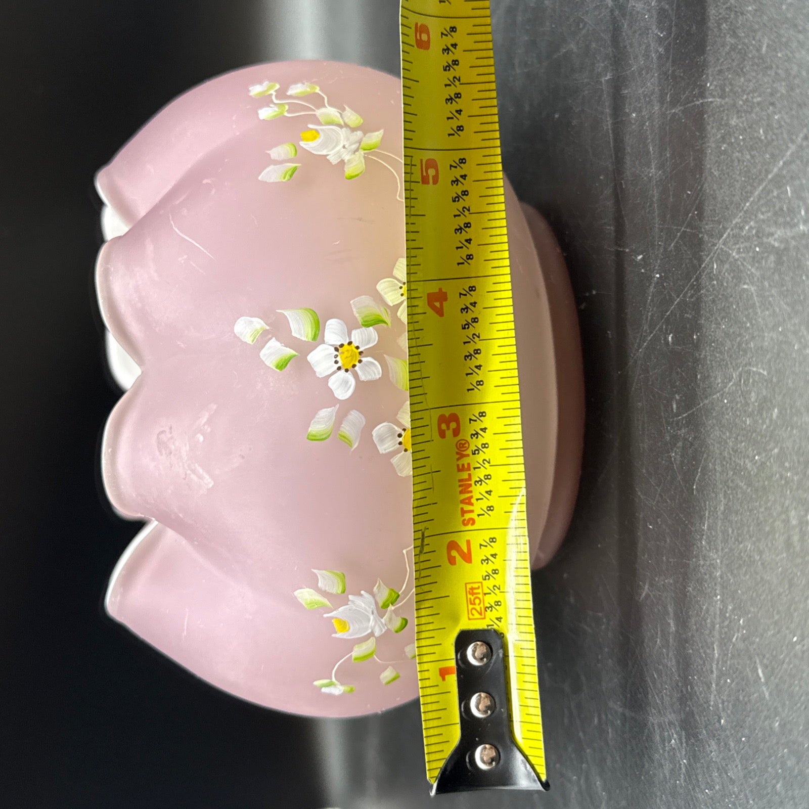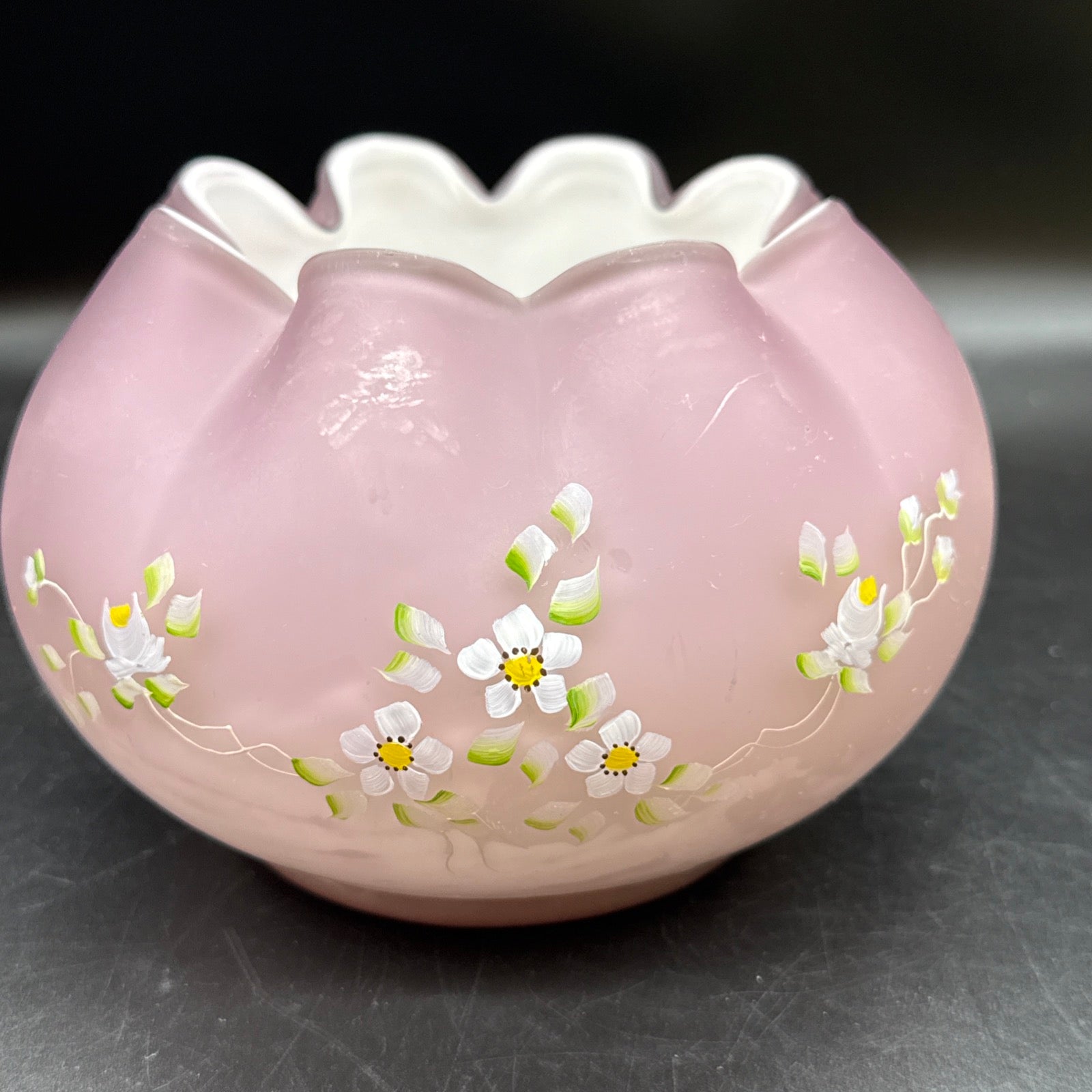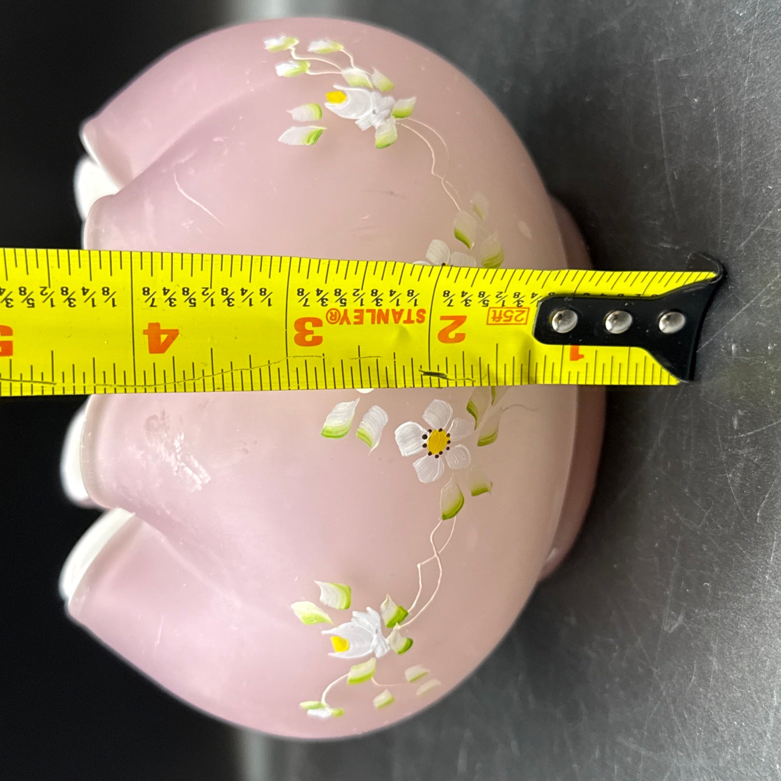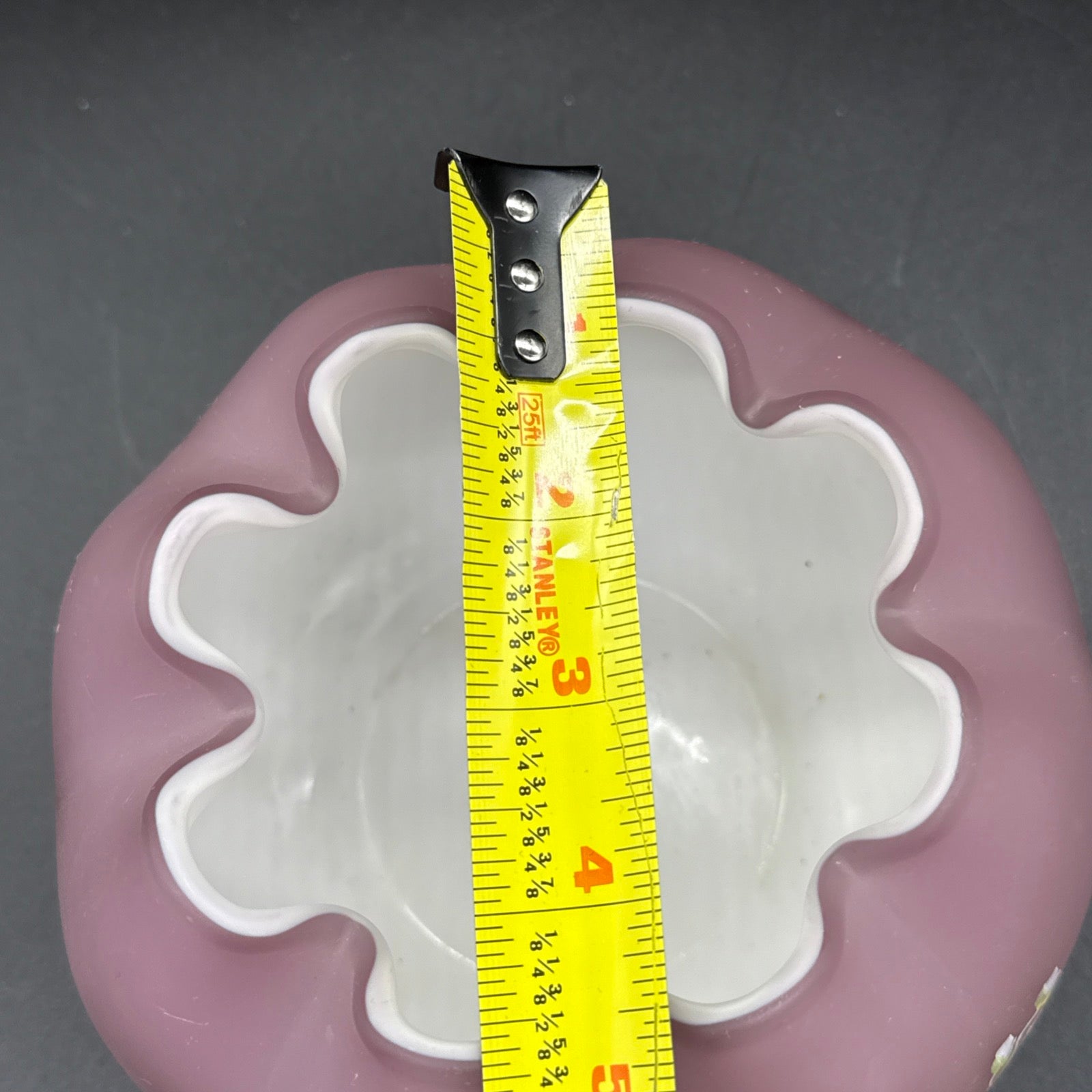 VTG Lavender Pink Cased Art Glass Rose Bowl Vase Hand Painted Signed Floral 4"