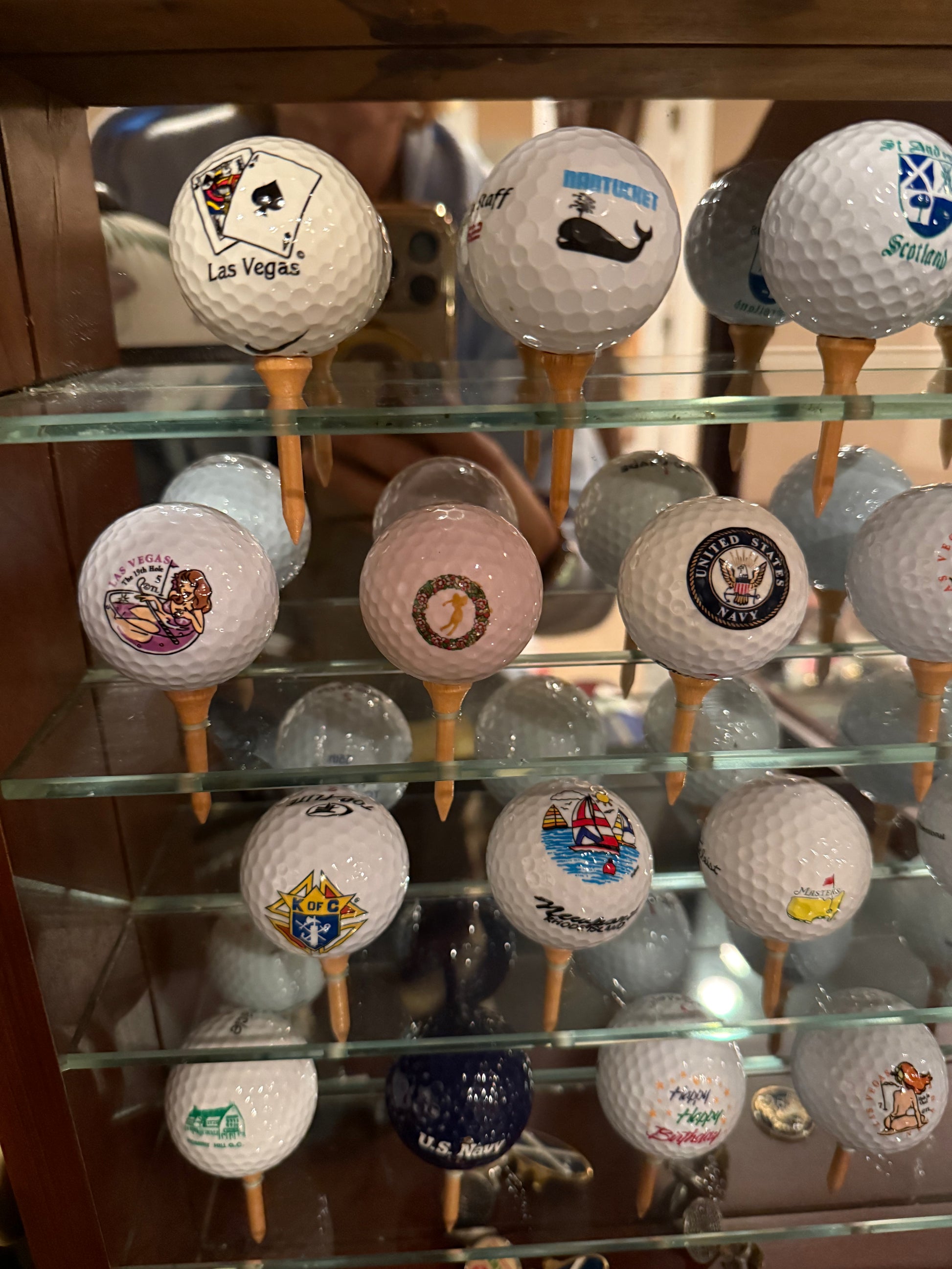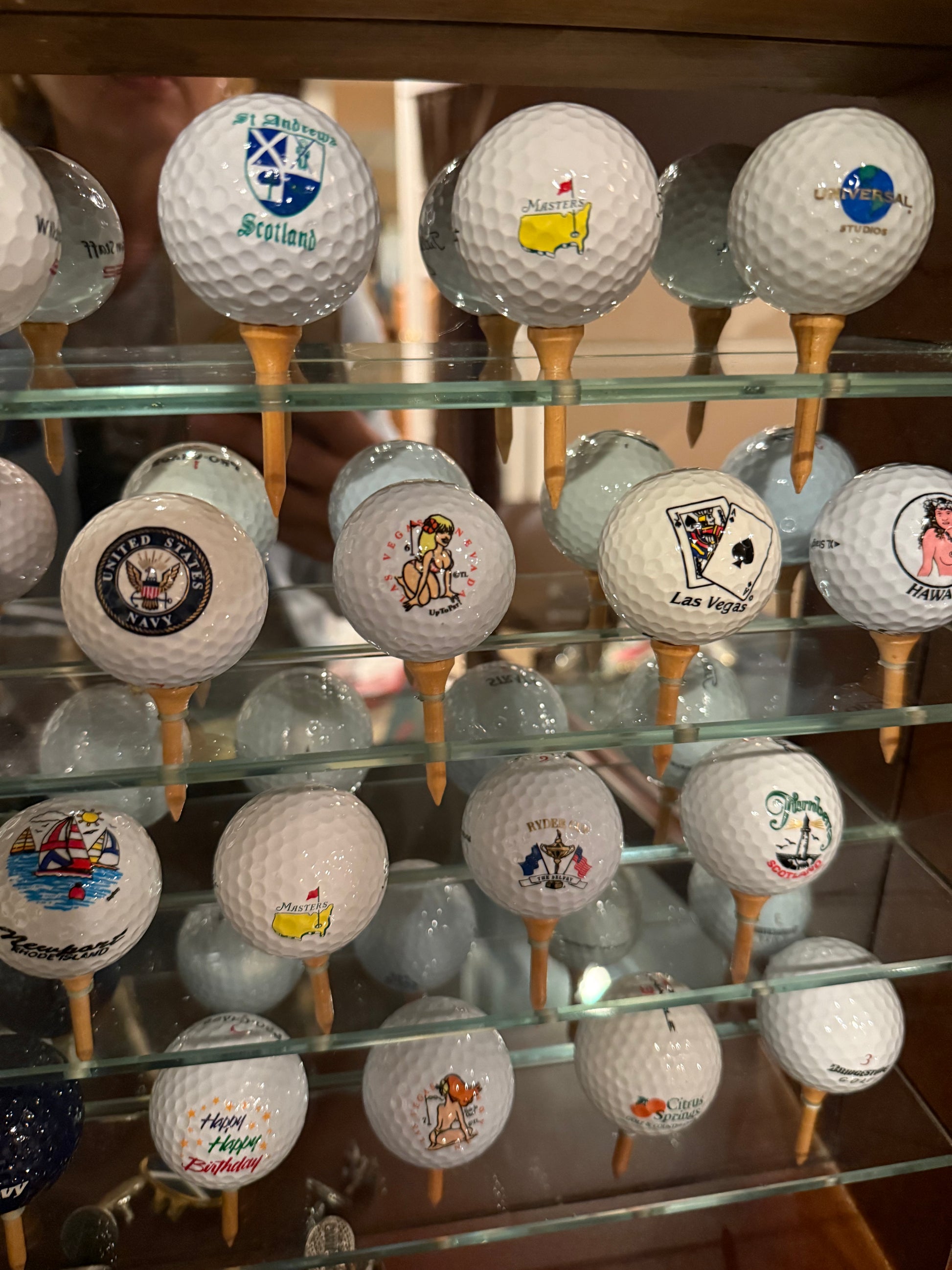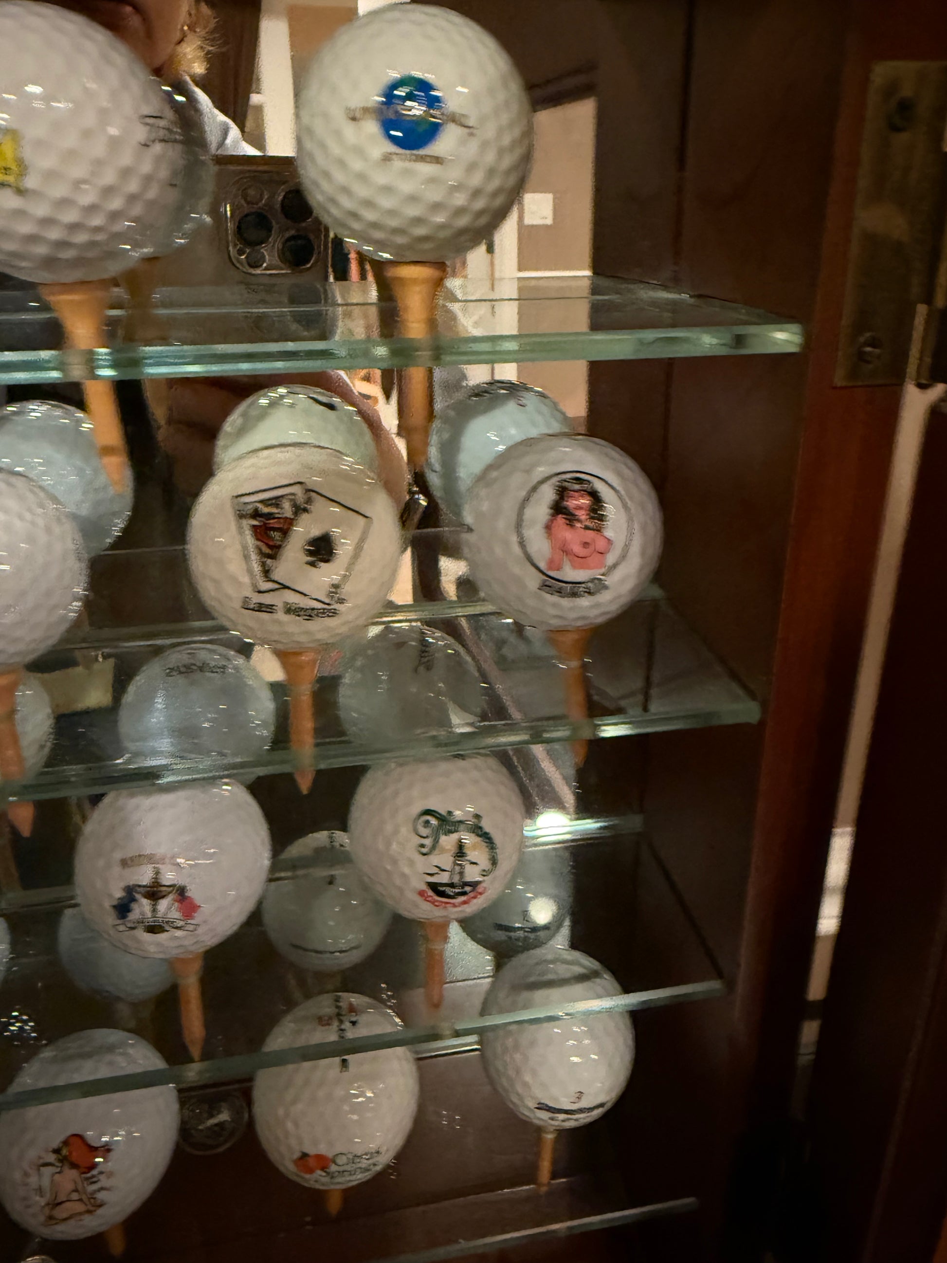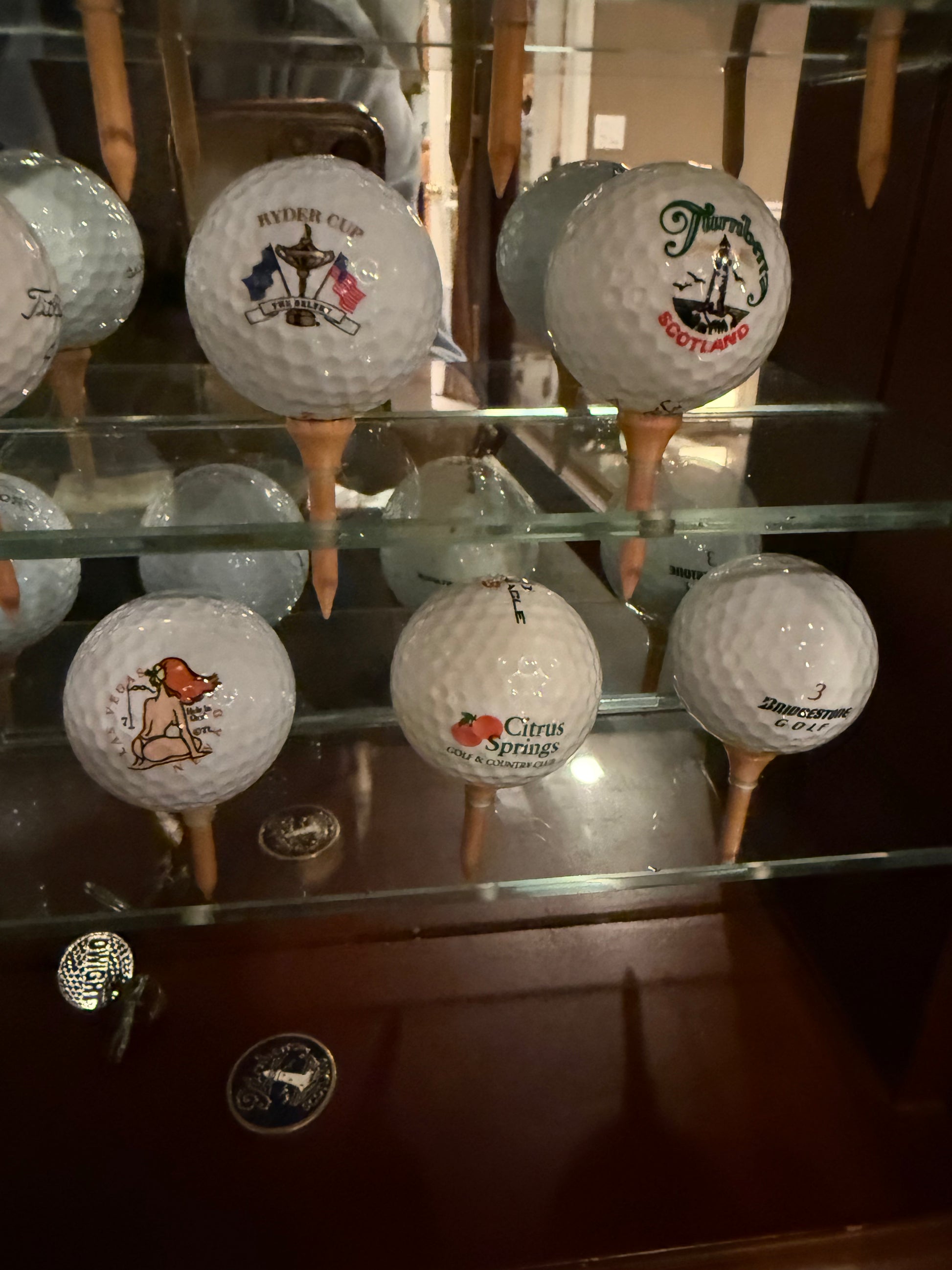 Wooden Old World Golf Club Display Case Cabinet With 22 Open Golf Balls And Pins