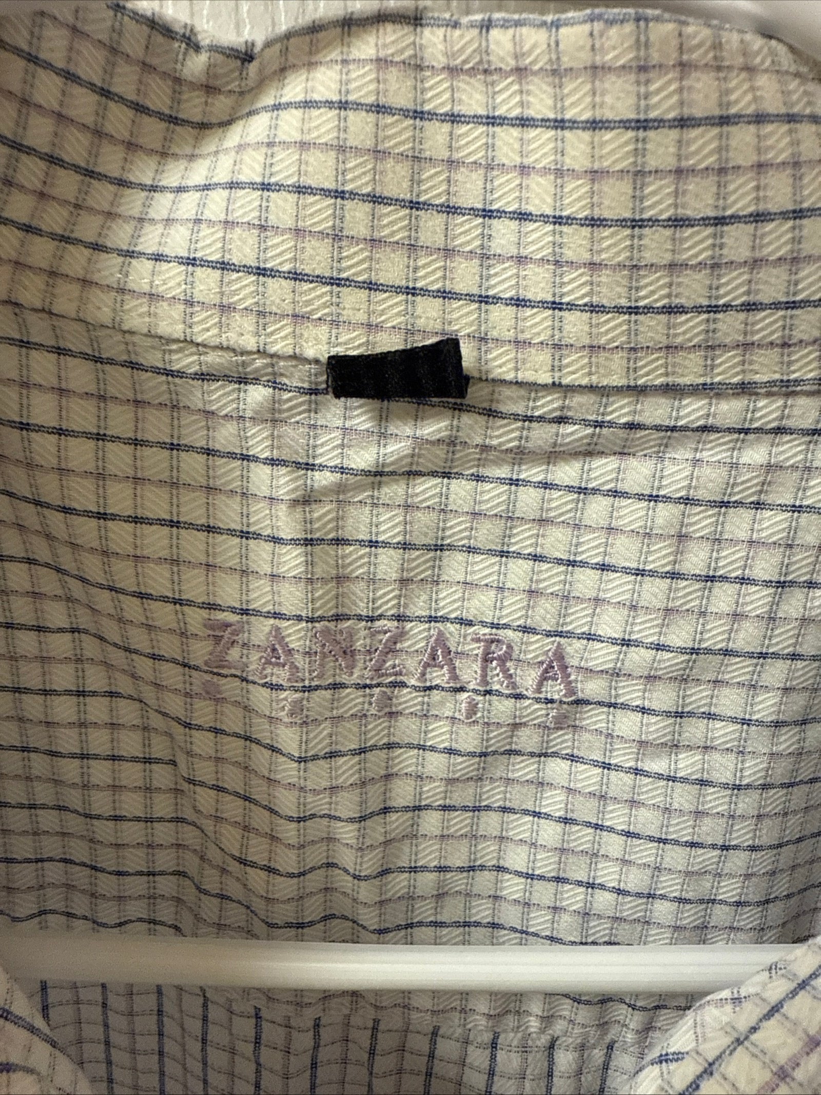 Zanzara Mens Cotton Long Sleeve Shirt Blue, White And Pink Tall 18 (36/37)